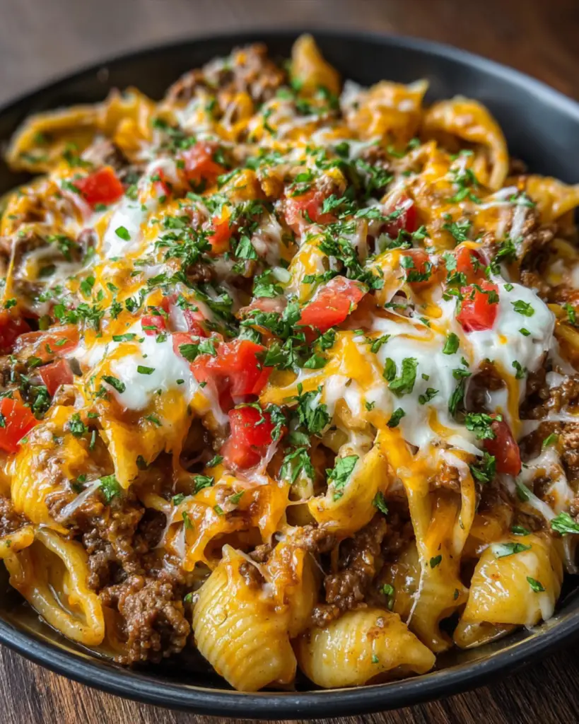 PrintLoaded Cheesy Beef Pasta: A Comforting Recipe You’ll Love!