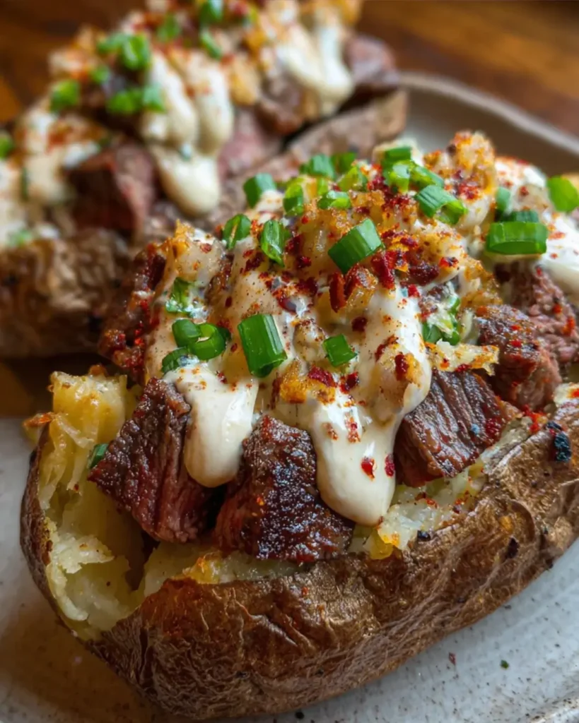 - Spicy Loaded Steak Potato: Add diced jalapeños or a splash of hot sauce to the steak mixture for a fiery kick.