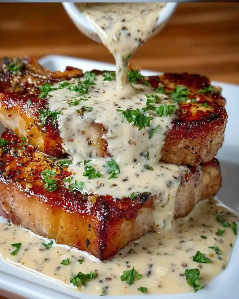 Maple Bacon Pork Chops with Dijon Mustard Cream Sauce delight your taste buds with a perfect blend of sweet and savory flavors.
