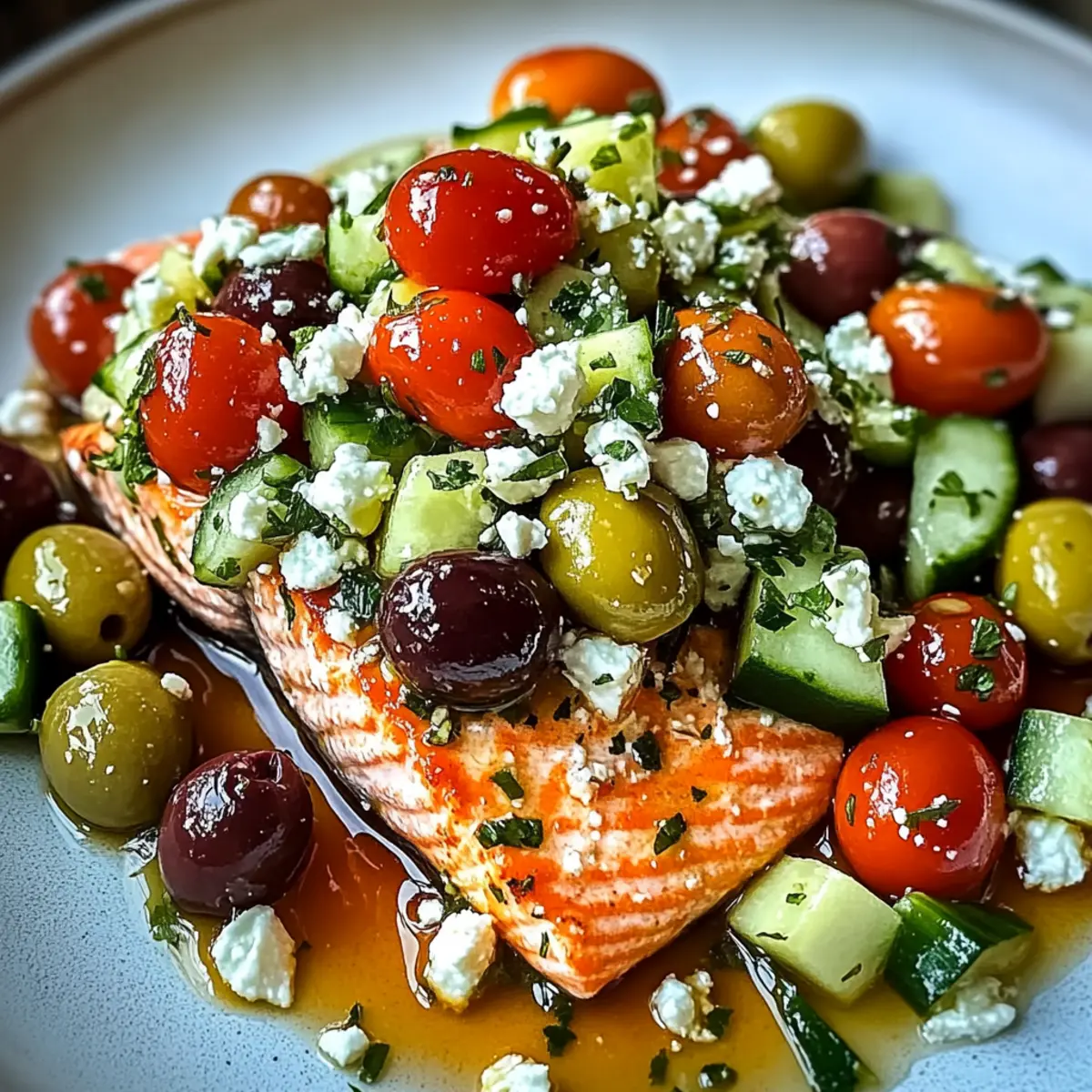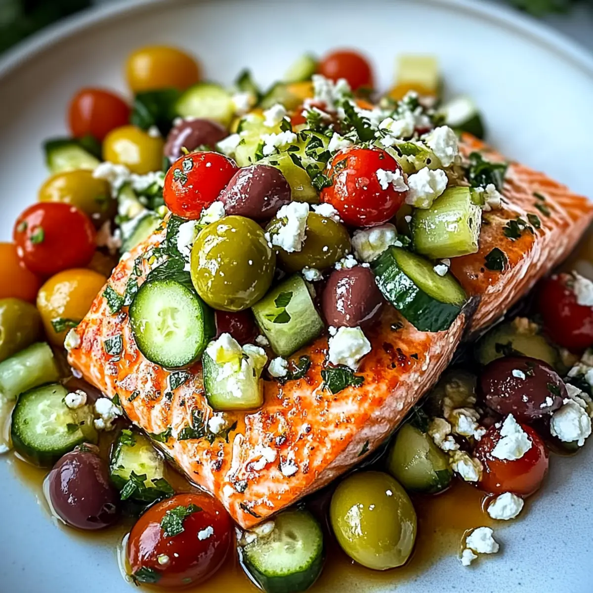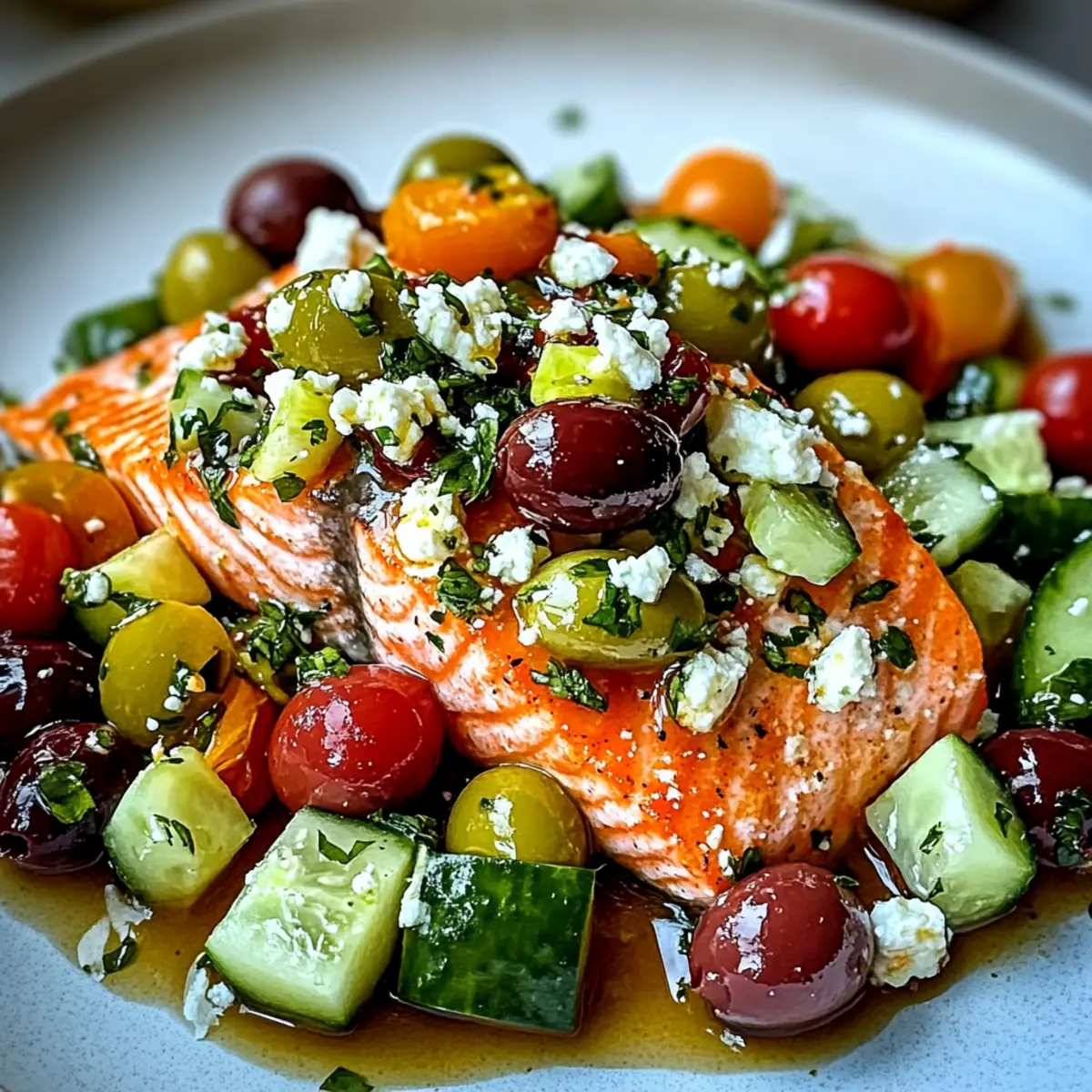 Savory Mediterranean Salmon with Crunchy Fresh Veggies