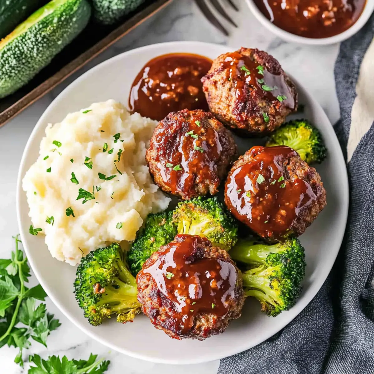 Coleslaw: A tangy coleslaw brings a zesty crunch that lights up your palate, enhancing the heartiness of the mini meatloaf.