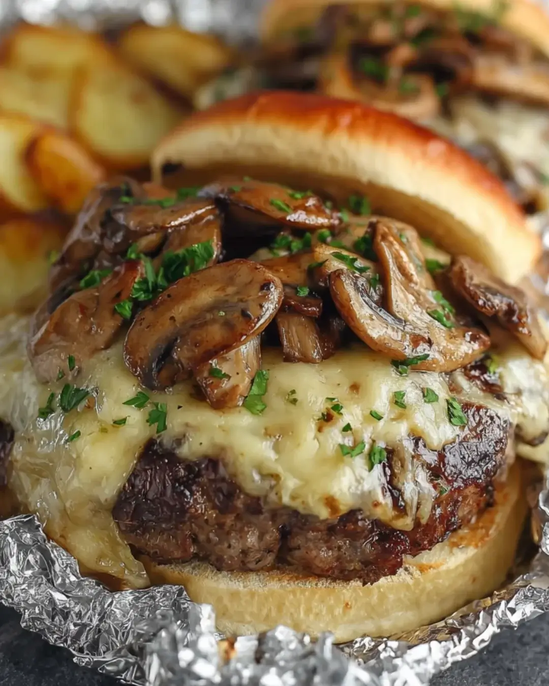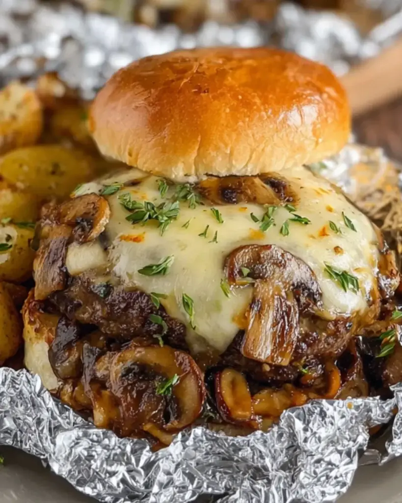 Mushroom and Swiss Burger Foil Packets are a delicious and convenient way to enjoy a classic burger with a twist, featuring juicy beef patties, savory mushrooms, and melted Swiss cheese, all cooked in foil for easy cleanup.