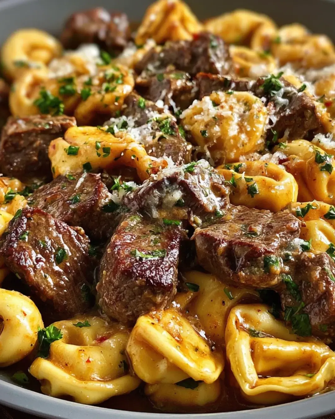 Finally, return the cooked steak and tortellini to the skillet. Toss everything together until well coated in the cowboy butter sauce. Cook for an additional 2 minutes to heat through. Once plated, garnish with fresh parsley for a touch of brightness. Your One-Pan Cowboy Butter Tortellini Steak is ready to impress!