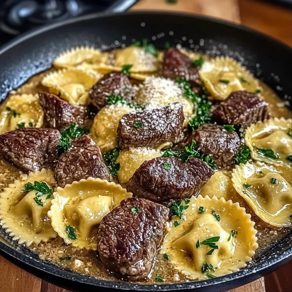 One-Skillet Garlic Butter Steak & Cheese Ravioli in 25 Minutes