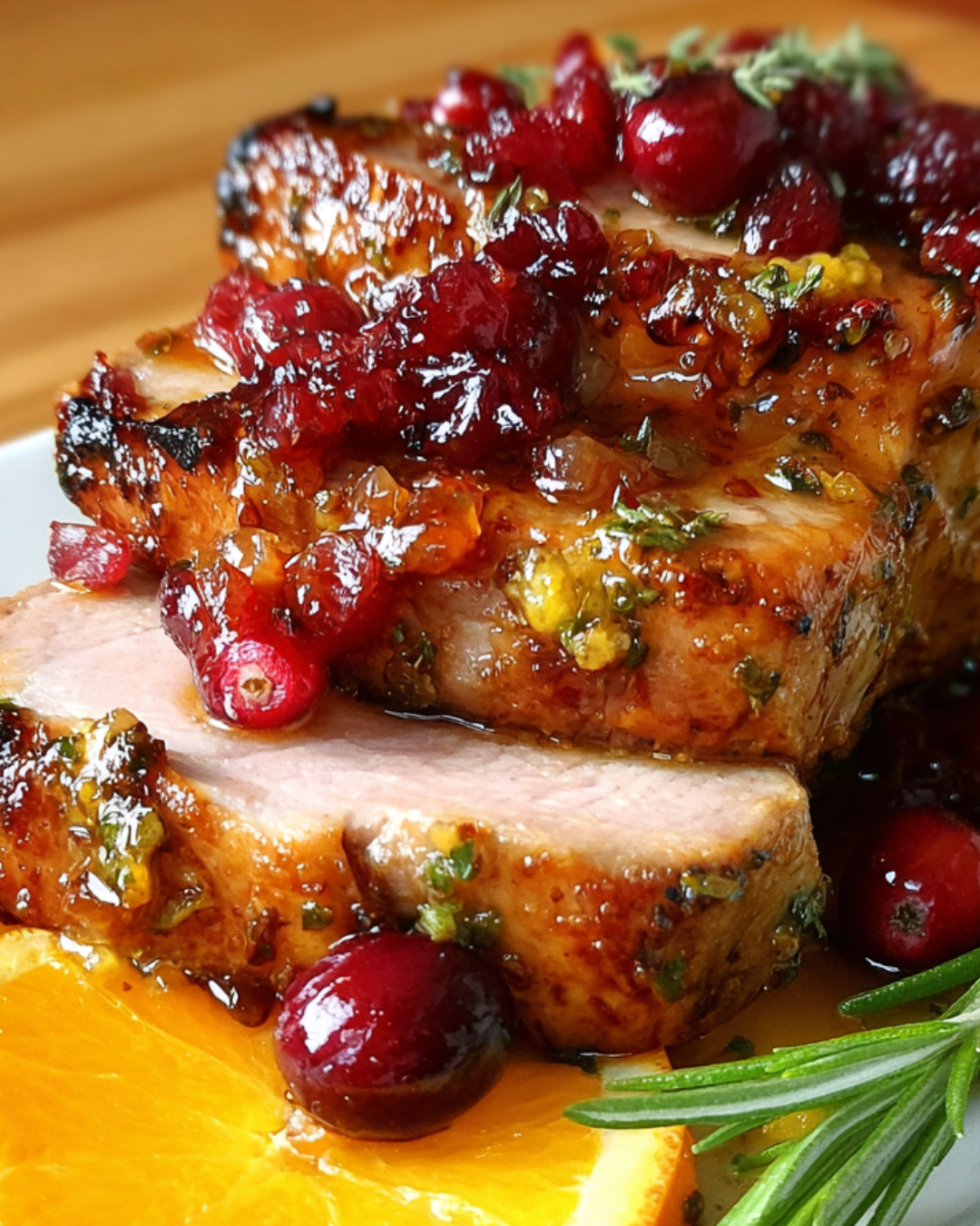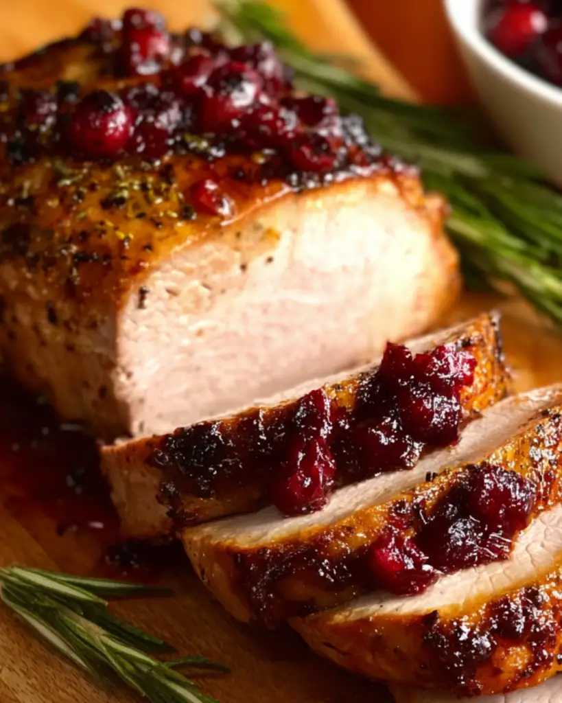 A flavorful and juicy Orange Cranberry Dijon Pork Loin Roast, perfect for any occasion.