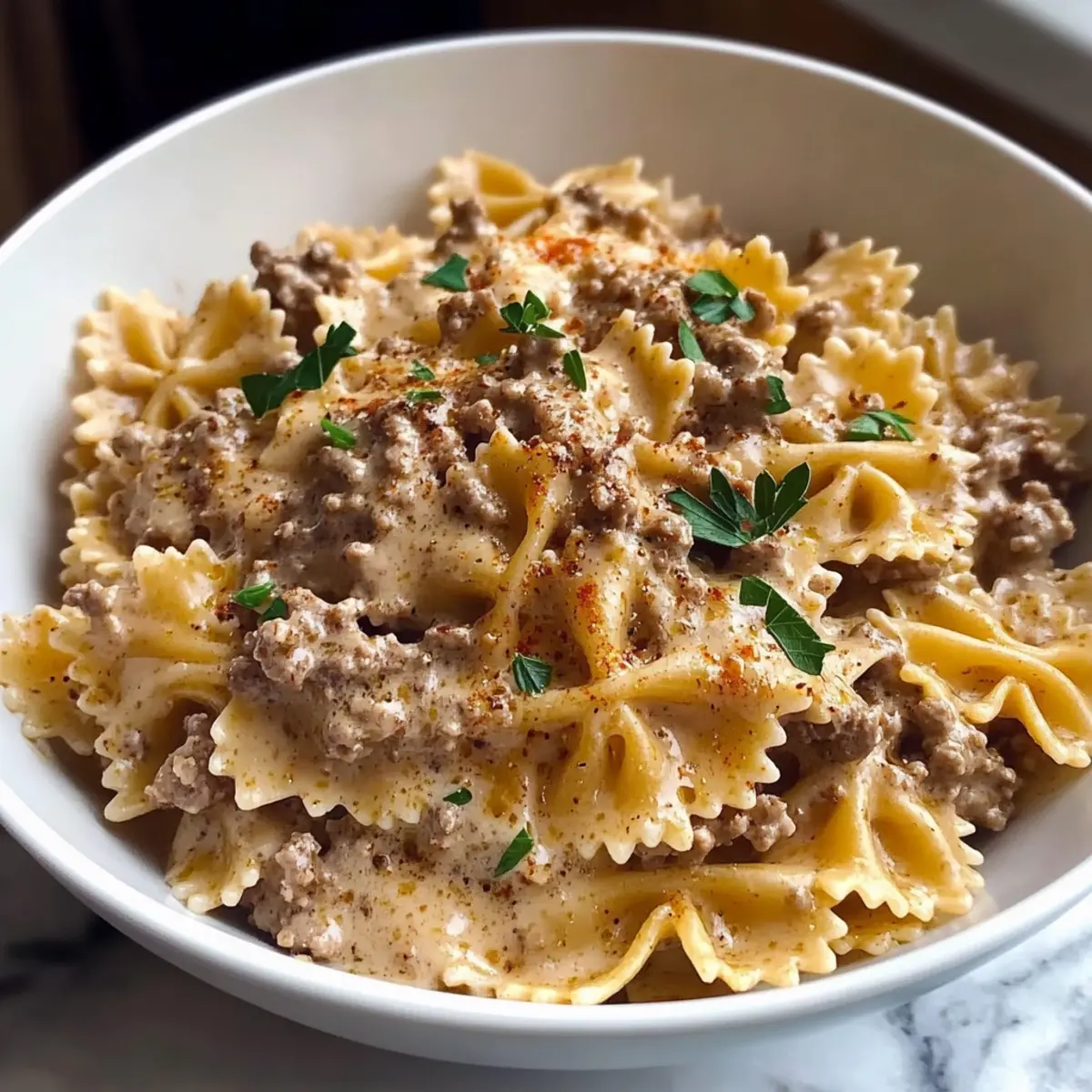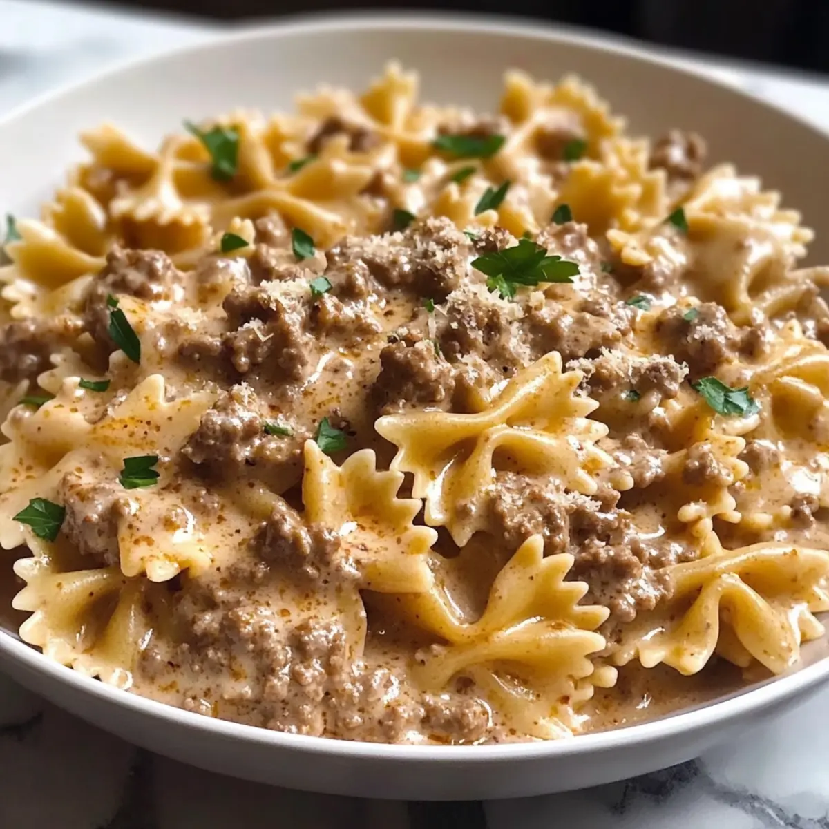 Parmesan Garlic Beef Bowtie Pasta: Comfort in Every Bite