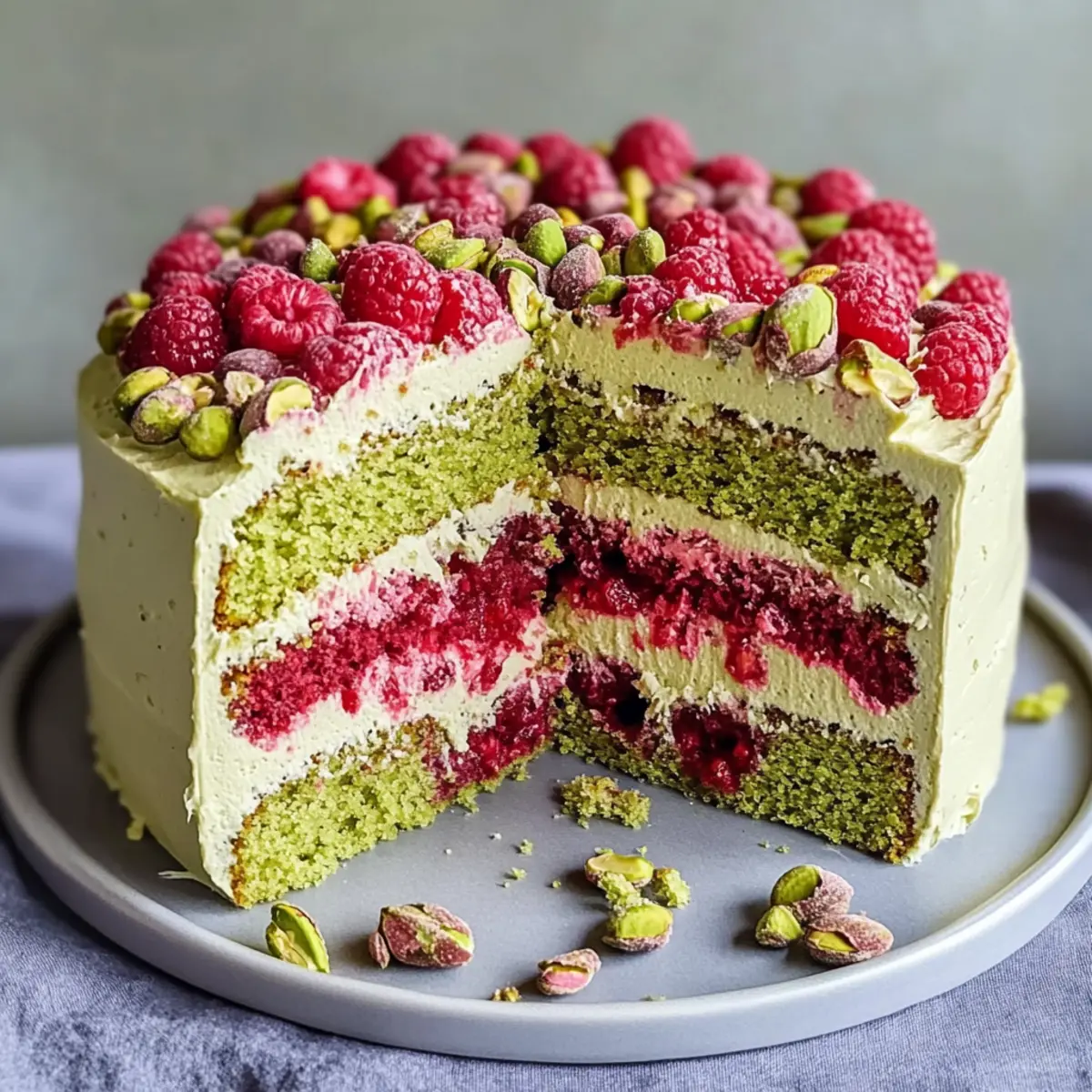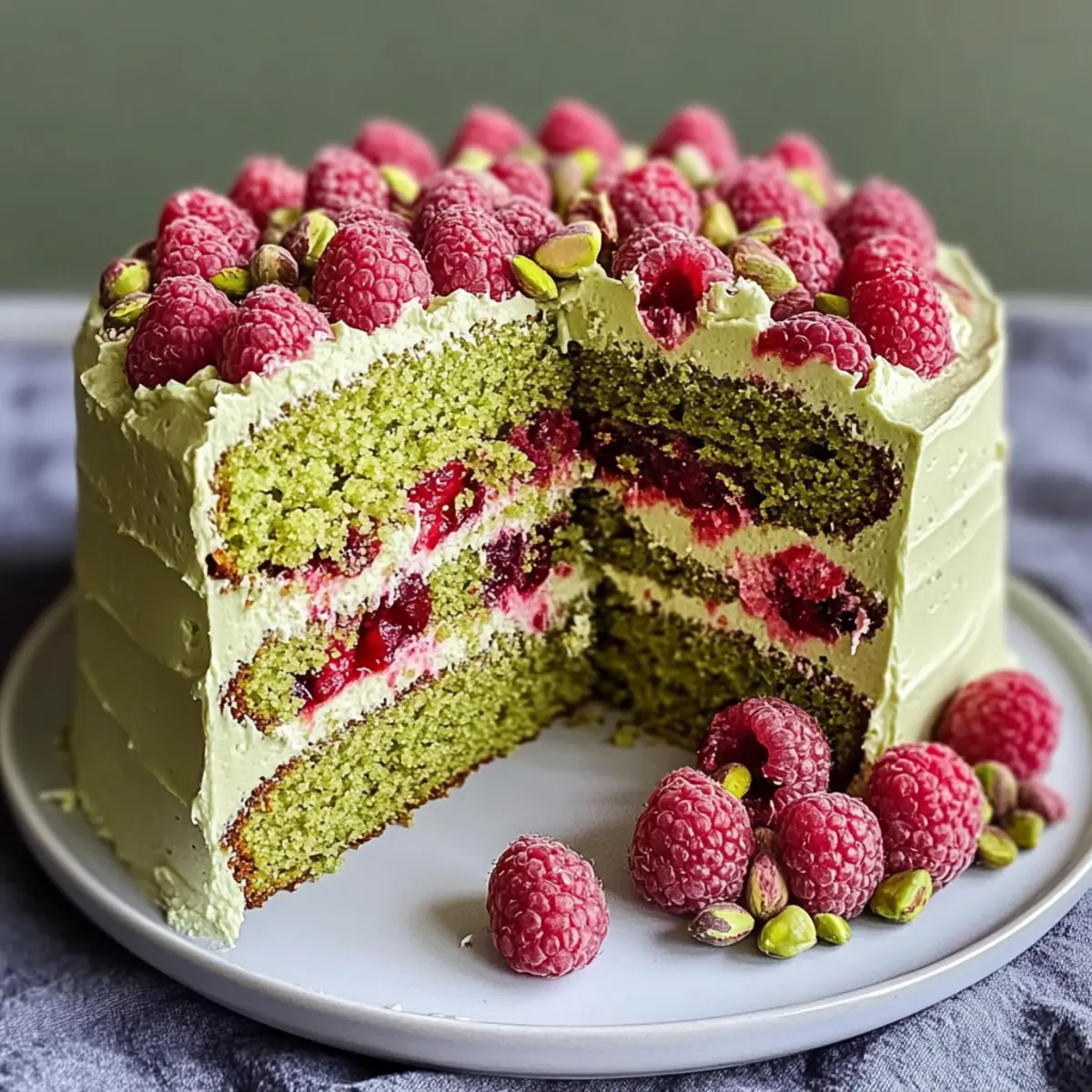 • Here’s everything you need to create this delightful Pistachio Raspberry Cake!