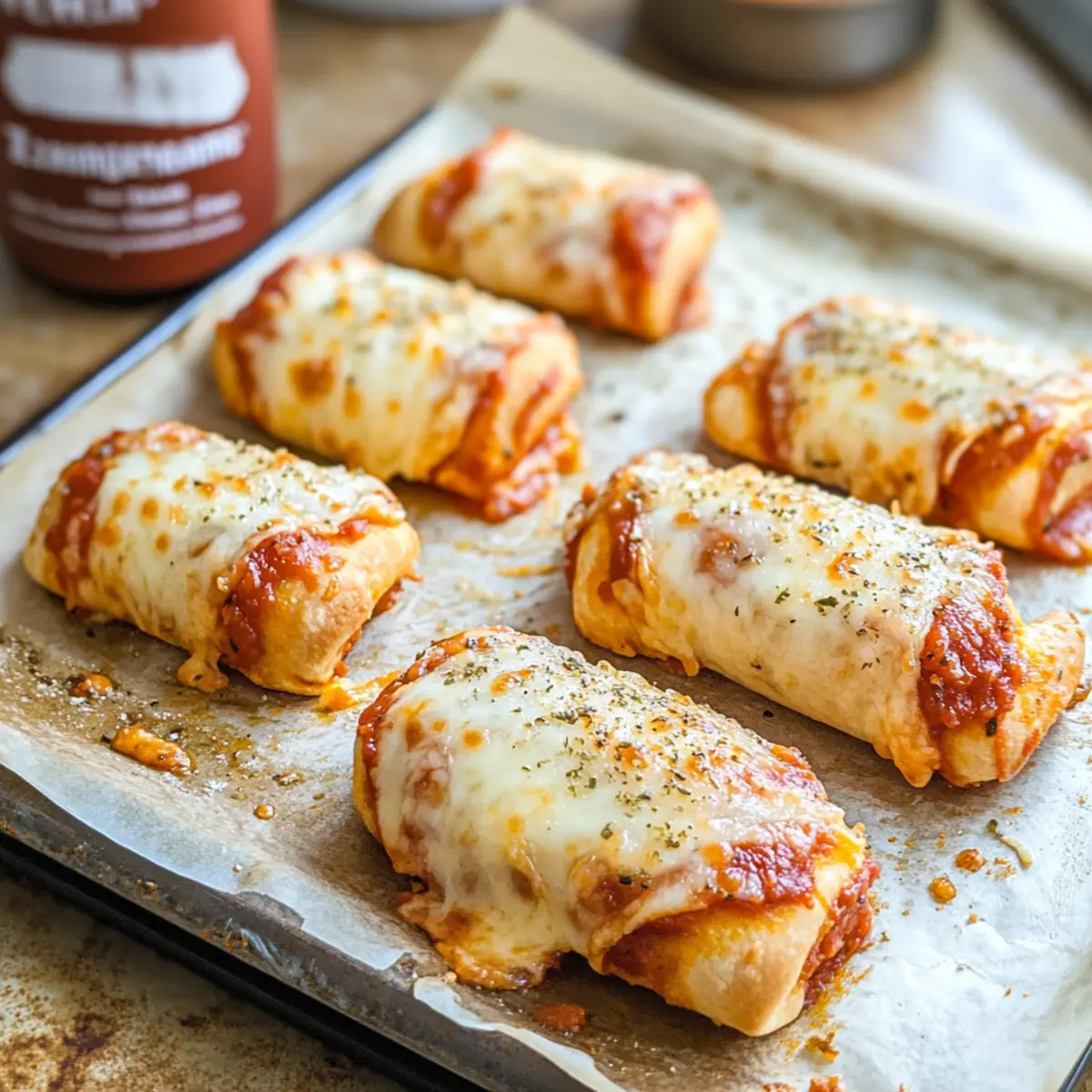 Slide the baking sheet into your preheated oven and bake the pizza rolls for about 10 to 12 minutes. Keep an eye on them; once they’re crispy and golden-brown, you’ll know they’re ready. The delicious aroma wafting through your kitchen will surely signal that something scrumptious is on the way!