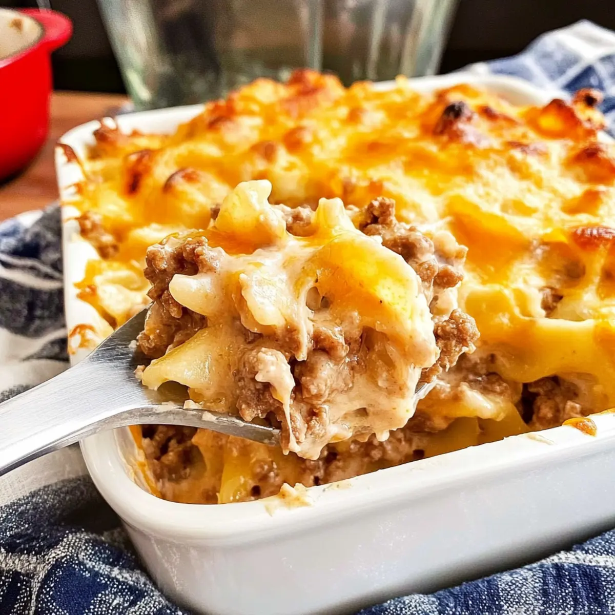 As I rummaged through my pantry for dinner ideas, I stumbled upon a household favorite: Creamy Poor Man’s Casserole. This nostalgic dish is a warm embrace on a plate, featuring layers of seasoned ground beef, creamy noodles, and melted cheese that effortlessly come together. Not only is it a budget-friendly option perfect for feeding a family, but it also boasts a quick prep time that makes it ideal for busy weeknights. The rich flavors are sure to draw everyone to the table, making leftovers a rare sight! So, are you ready to whip up this comforting classic that everyone will love?