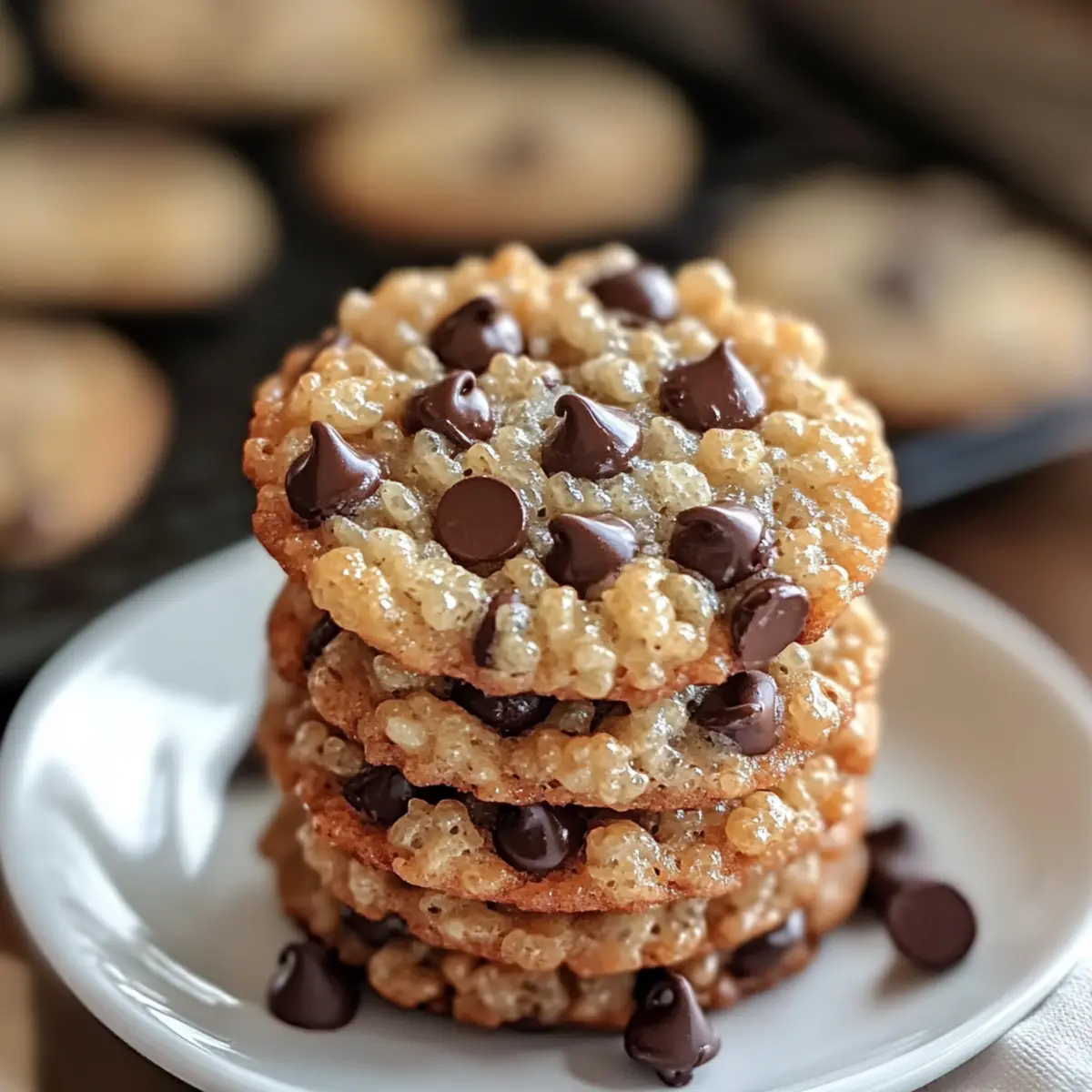 Irresistible Crunch: These cookies combine the classic chewy texture of chocolate chip cookies with a delightful crispy coating, thanks to Rice Krispies.
