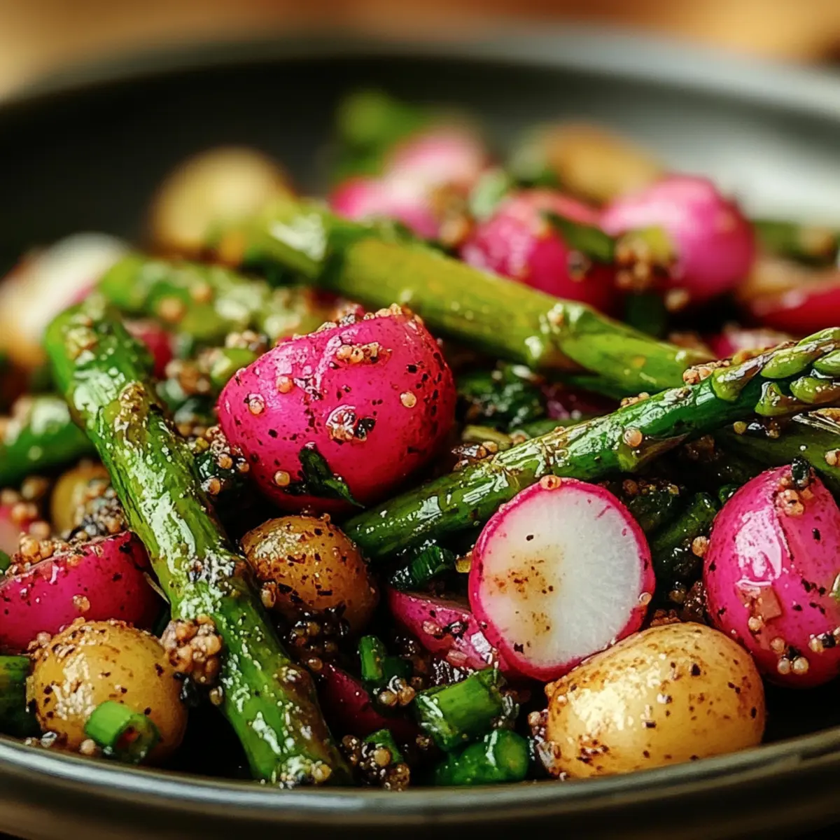 Roasted Asparagus and Radishes with Zesty Mustard Vinaigrette