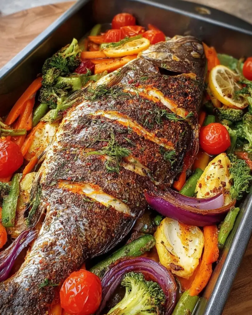 This roasted whole fish with mixed vegetables is a game-changer for any home cook.