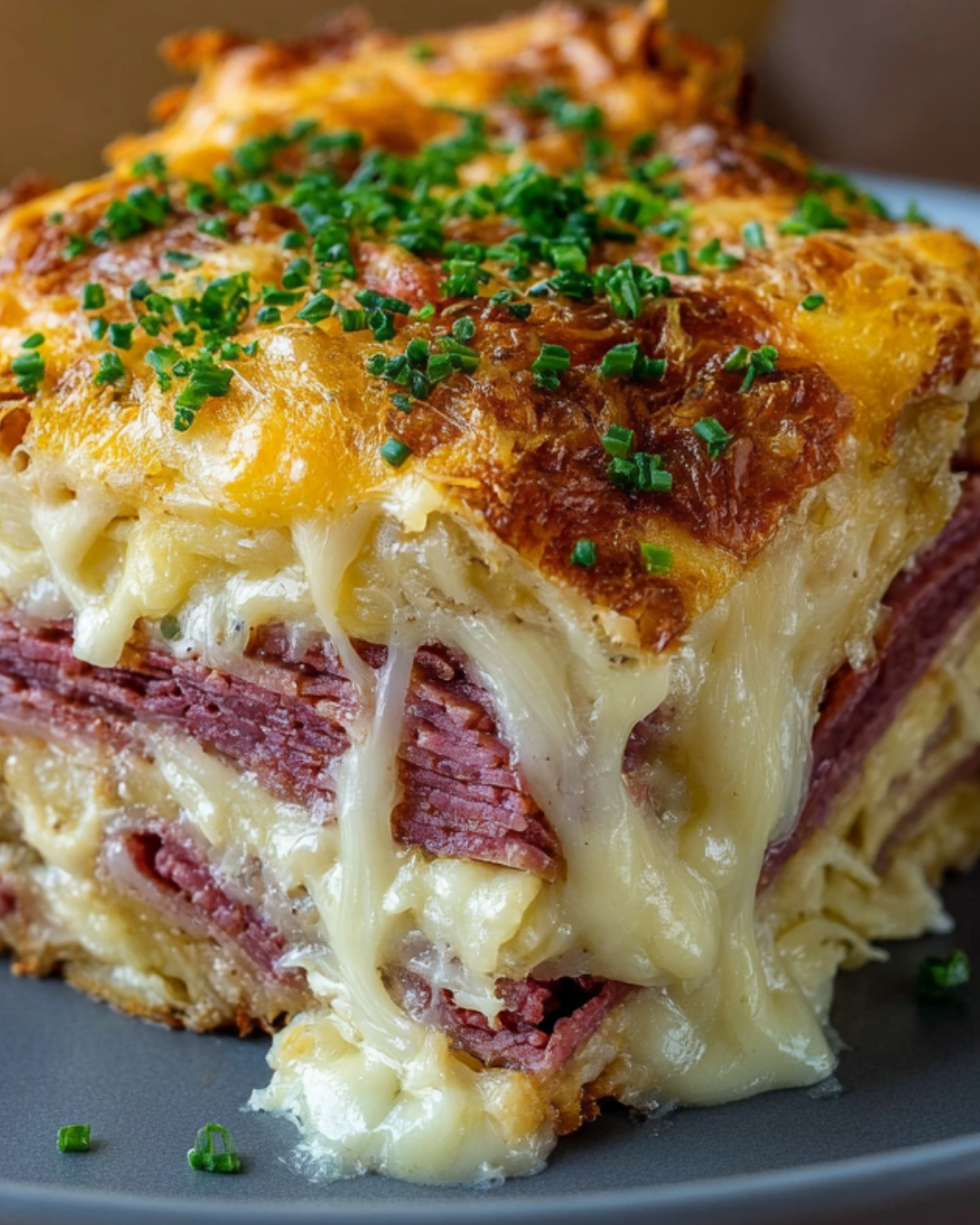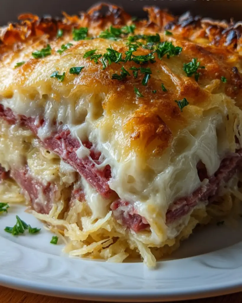 How to Make Savory Reuben Bake with Layers of Corned Beef, Sauerkraut, and Swiss Cheese
