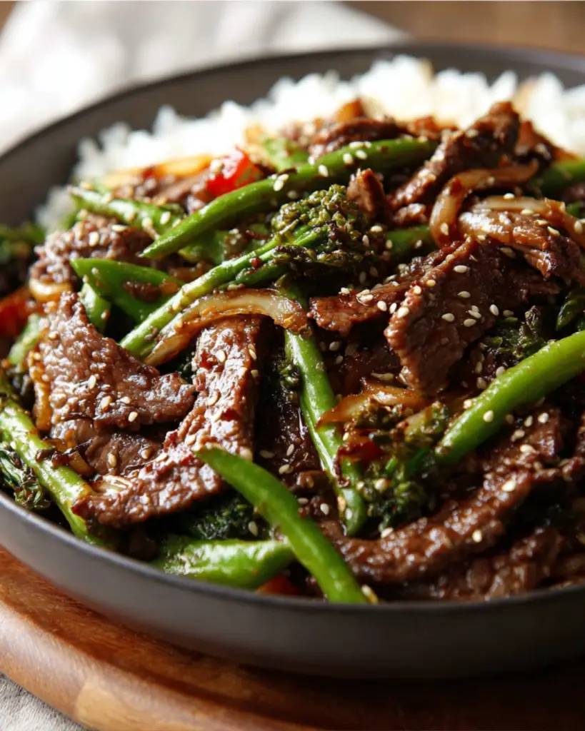 Now it’s time to bring everything together! Return the cooked beef to the skillet with the vegetables. Toss everything together for an additional 1-2 minutes to heat through. The flavors will meld beautifully. Serve your stir fry hot over a bed of cooked rice or noodles. Don’t forget to sprinkle sesame seeds and sliced green onions on top for that extra flair!