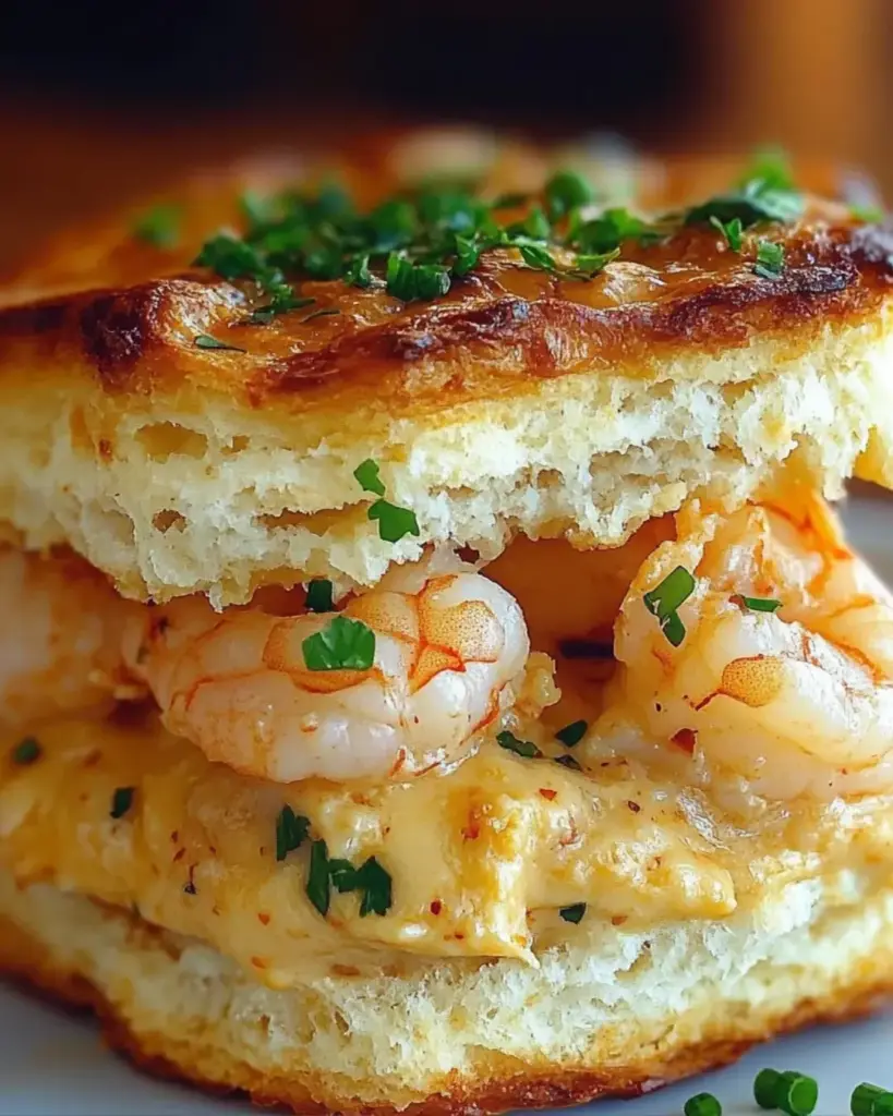 The combination of tender shrimp, sweet crab, and gooey cheese on a flaky biscuit is simply irresistible.