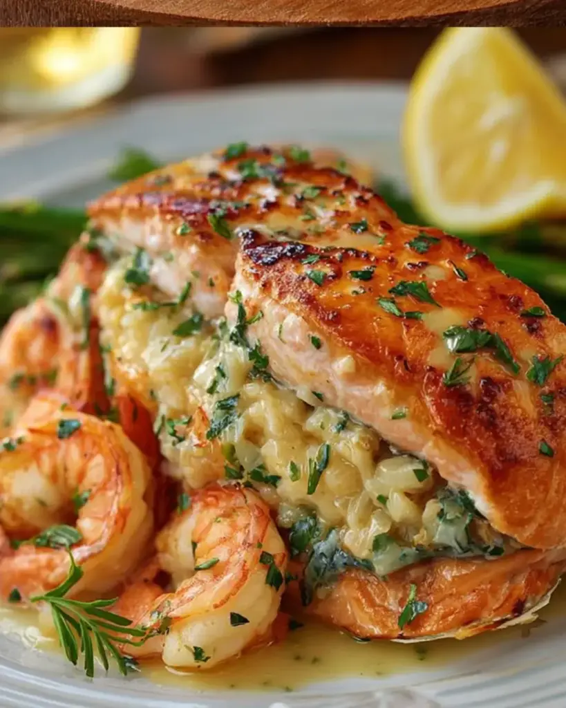 Introduction to Shrimp-Stuffed Salmon with Lemon Garlic Butter Sauce