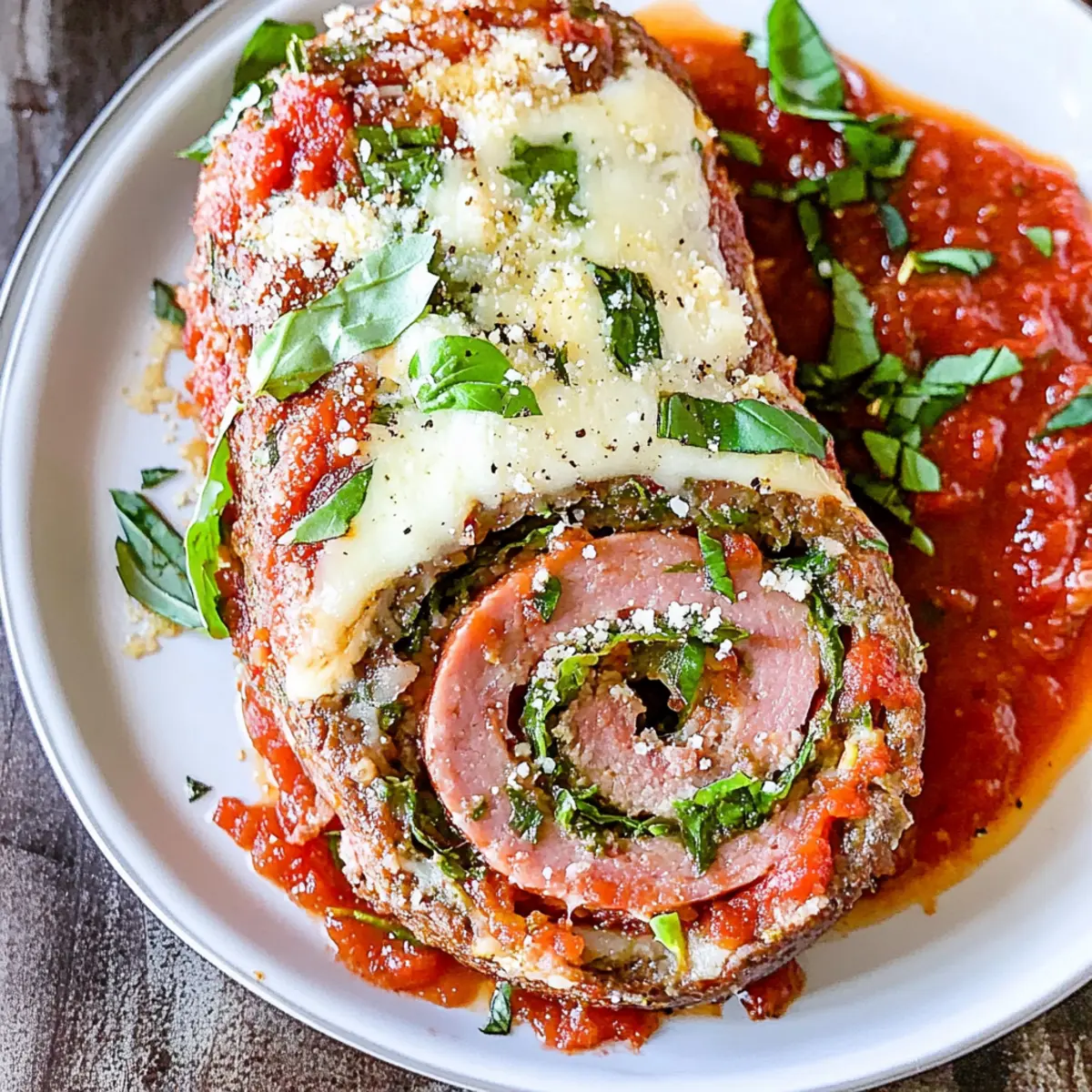 After baking, remove the Sicilian Meatloaf Roll from the oven and let it rest for 10 minutes. This resting period allows the juices to redistribute, ensuring every slice is moist and flavorful. Slice the meatloaf and serve it over cooked pasta or zucchini noodles, topped with a generous scoop of warm marinara sauce for a delightful finish.