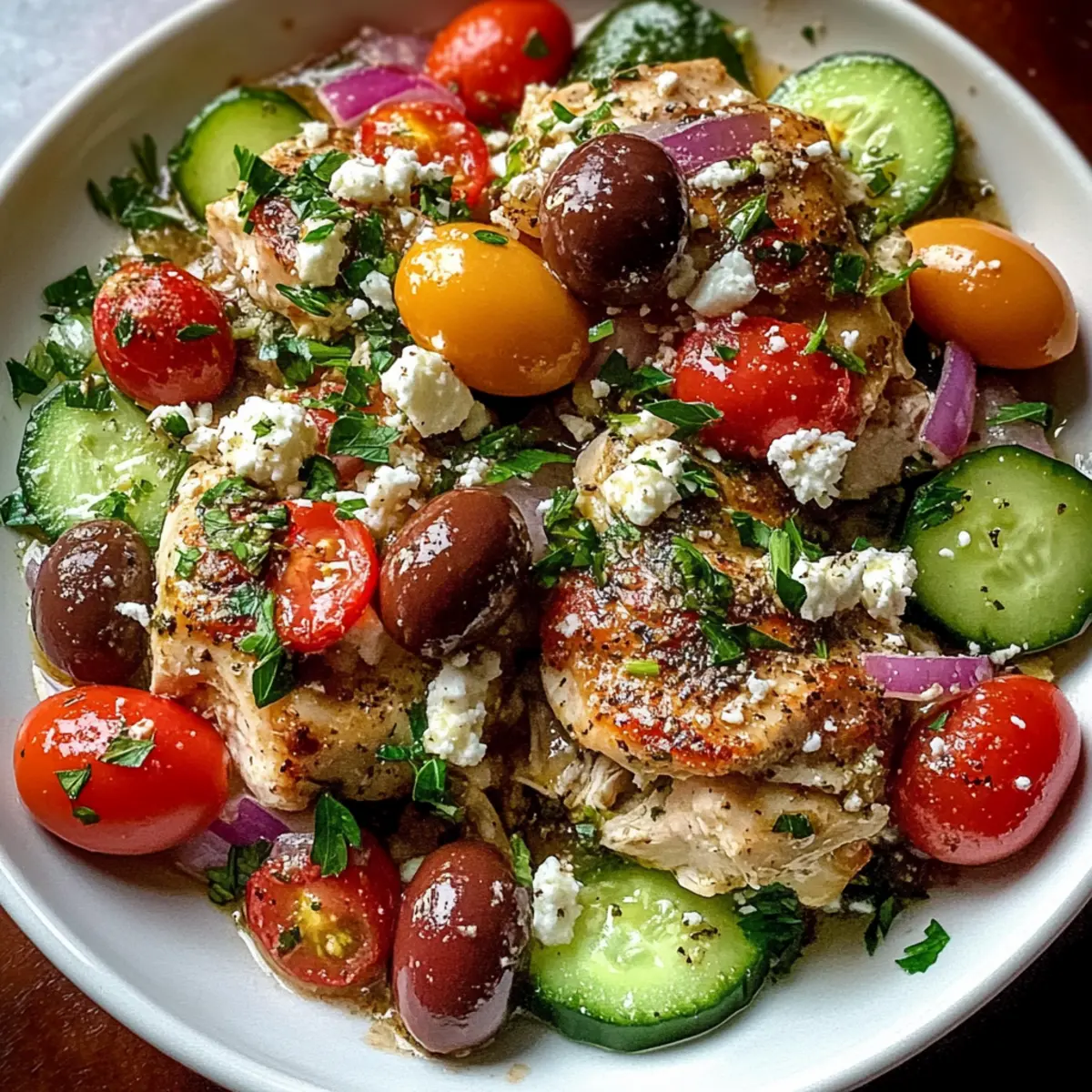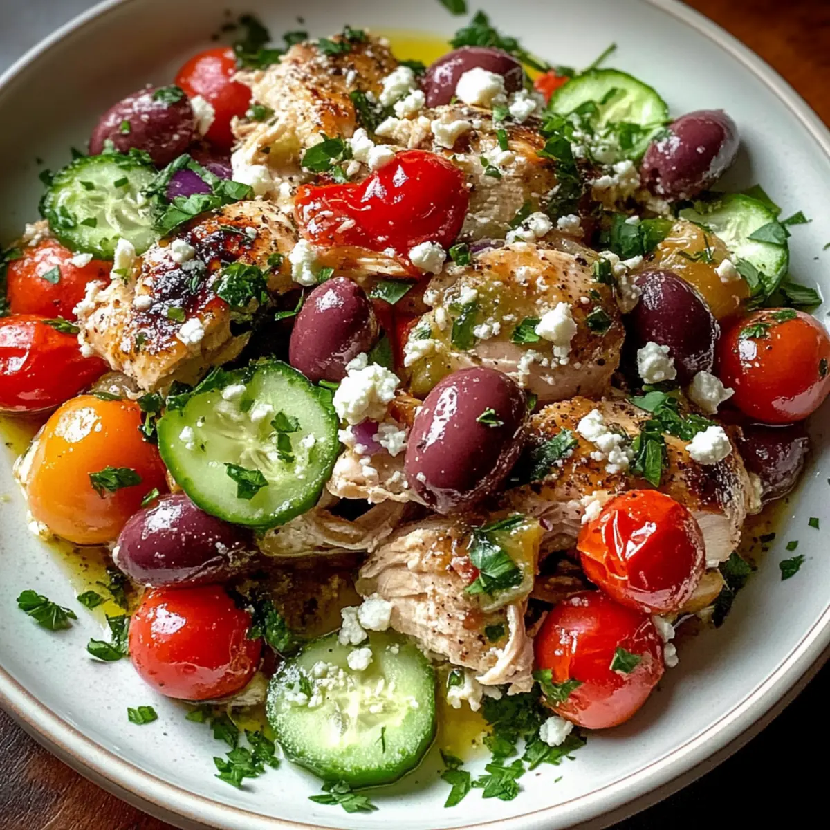 Serve your Slow Cooker Greek Chicken warm, garnished with crumbled feta and fresh parsley for a delightful finish. Pair it with sides like rice, quinoa, or a fresh salad to elevate your Mediterranean experience. Each bite will be a festive celebration of flavors!