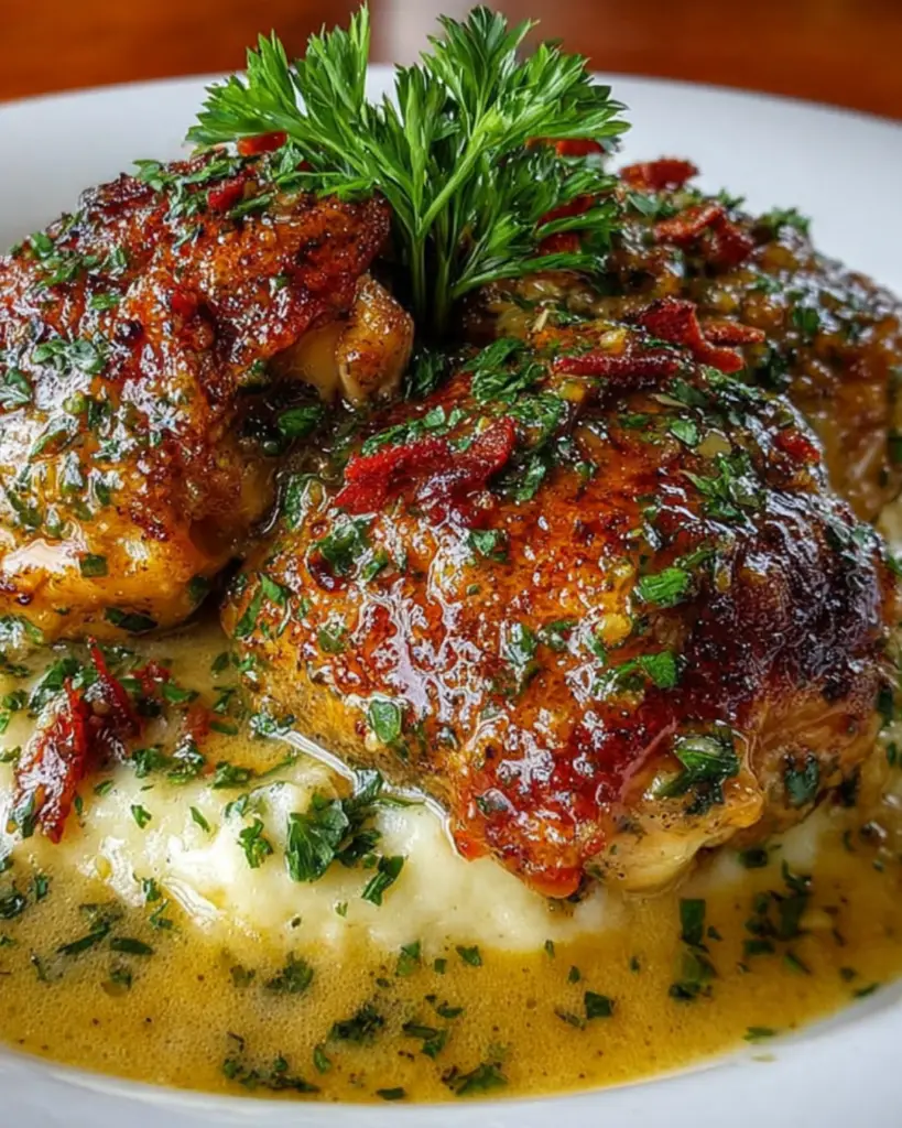 - Vegetarian Version: Substitute chicken thighs with hearty portobello mushrooms and use vegetable broth for a delicious meat-free alternative.