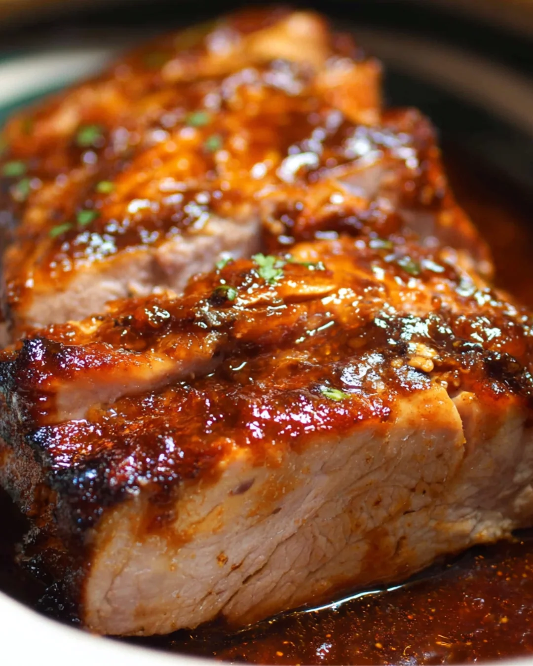 A delicious and easy recipe for Spicy BBQ Pork Loin cooked in a slow cooker, perfect for any gathering.