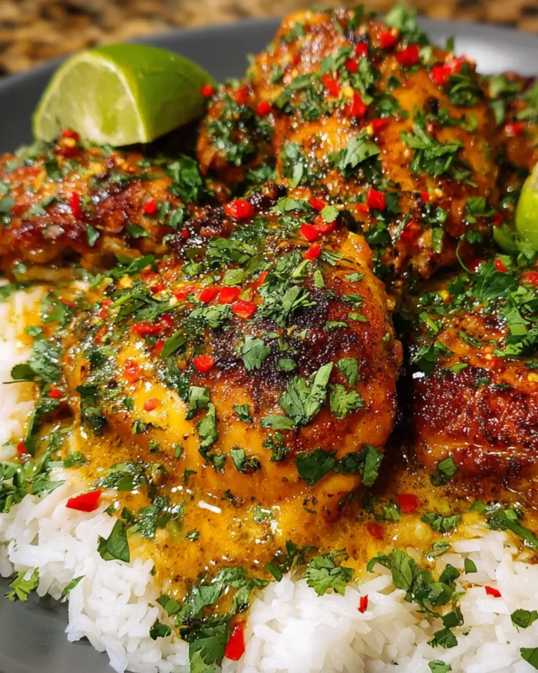 - Serve the sliced chicken over rice or quinoa, spooning the coconut sauce over the top. Garnish with fresh cilantro and lime wedges.