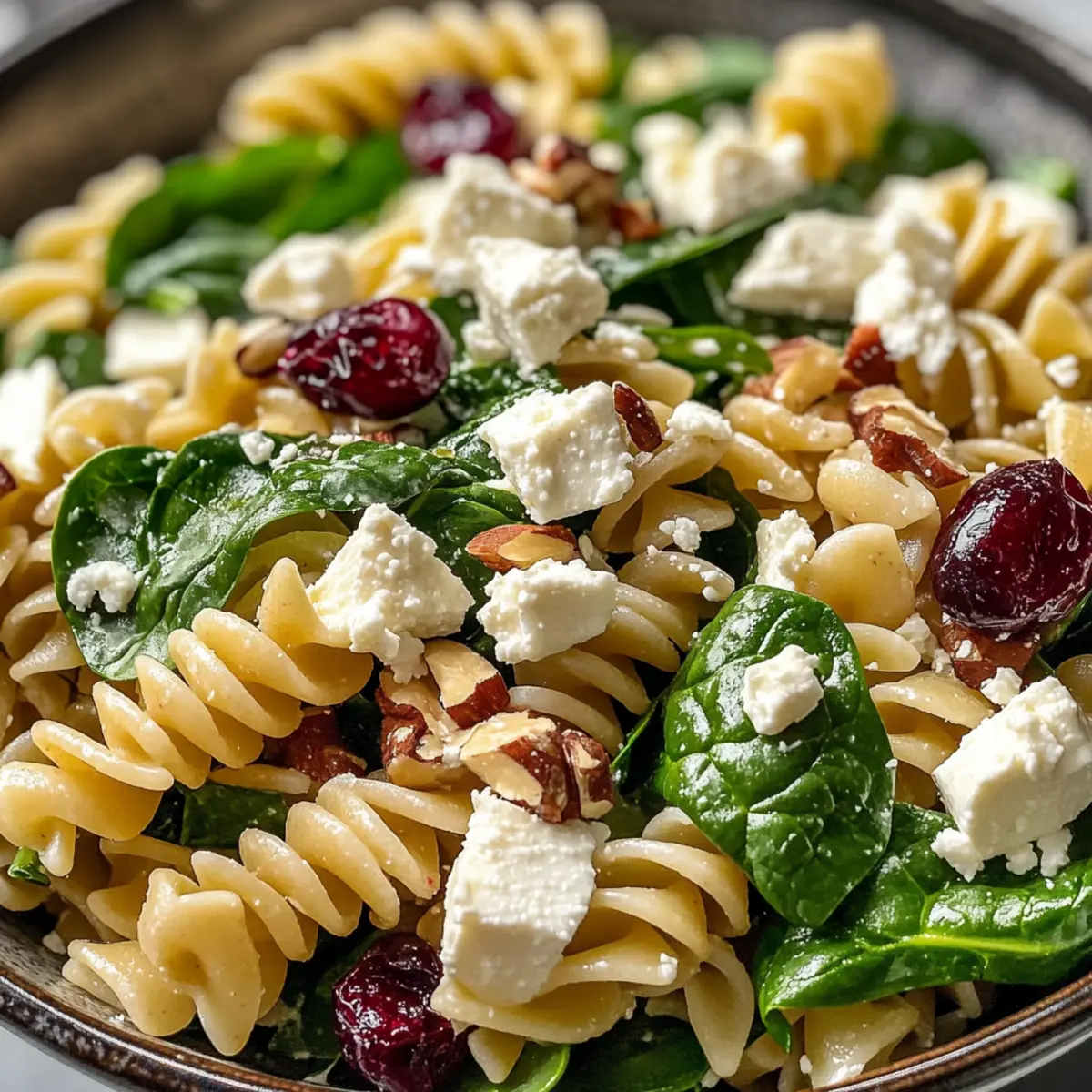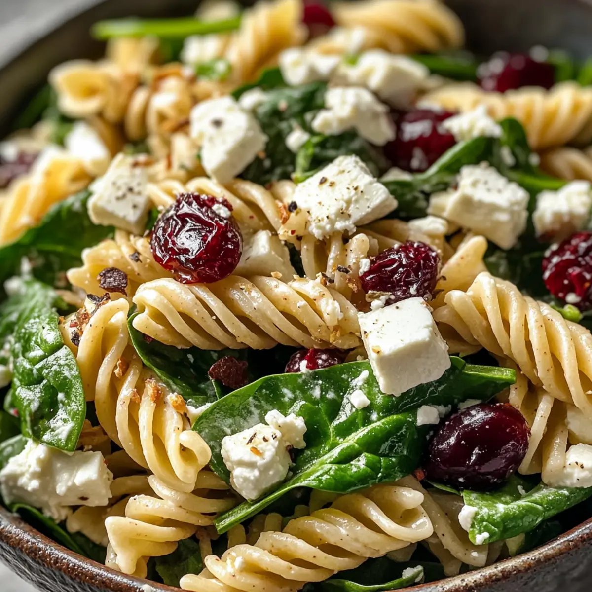 Spinach Pasta Salad with Feta and Cranberries Bliss