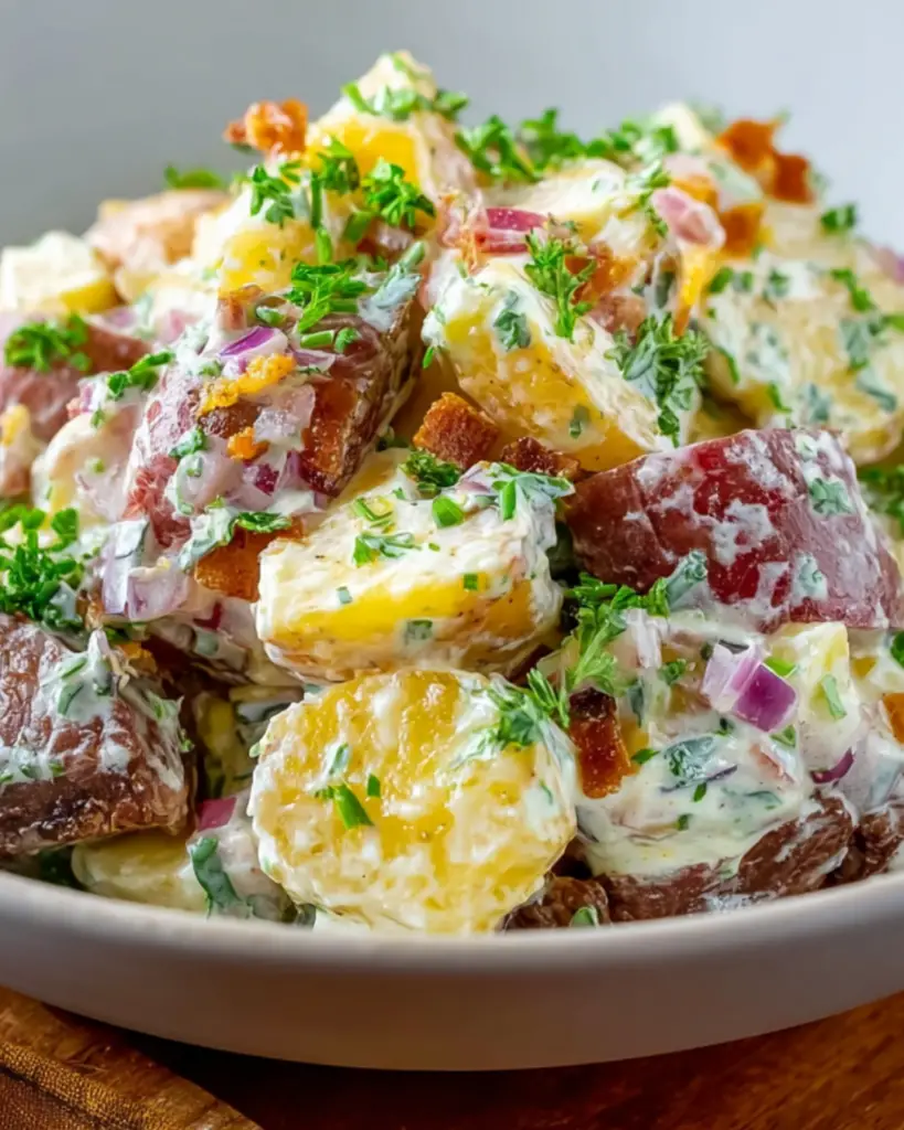 - Loaded Baked Potato Salad: Add crumbled blue cheese, diced tomatoes, and a drizzle of ranch dressing for a loaded twist.