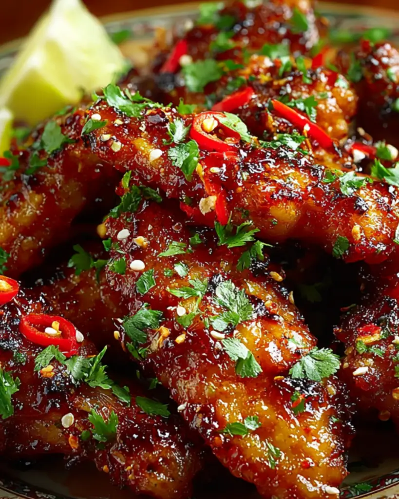 Deliciously sticky and flavorful Thai chicken wings, perfect for any gathering or as a tasty snack.