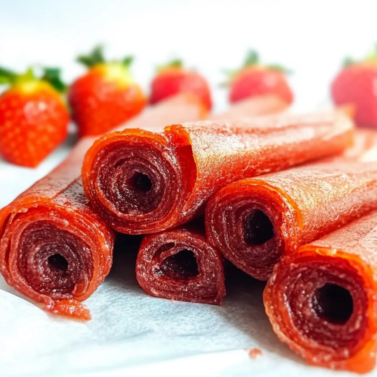Fridge: Store your homemade strawberry fruit roll-ups in an airtight container in the refrigerator for up to 2 weeks. This helps maintain their chewy texture and fresh flavor.