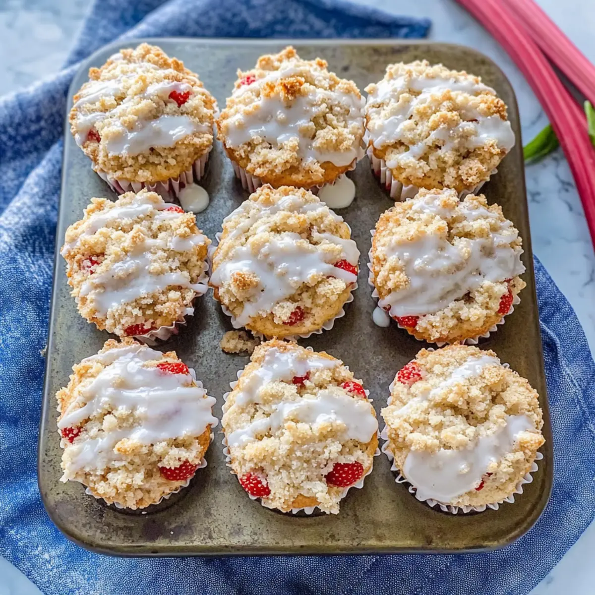 Irresistibly Soft Strawberry Rhubarb Muffins with Glaze