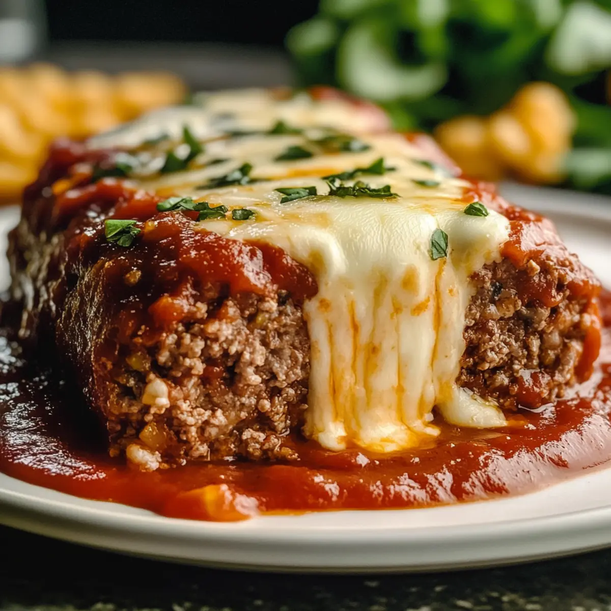 During the last 10 minutes of baking, carefully remove the meatloaf from the oven and spread a generous layer of marinara sauce on top. Return it to the oven, allowing the sauce to bubble and meld into the meatloaf. This step adds another layer of flavor and moisture, making your Stuffed Italian Meatloaf even more delectable.
