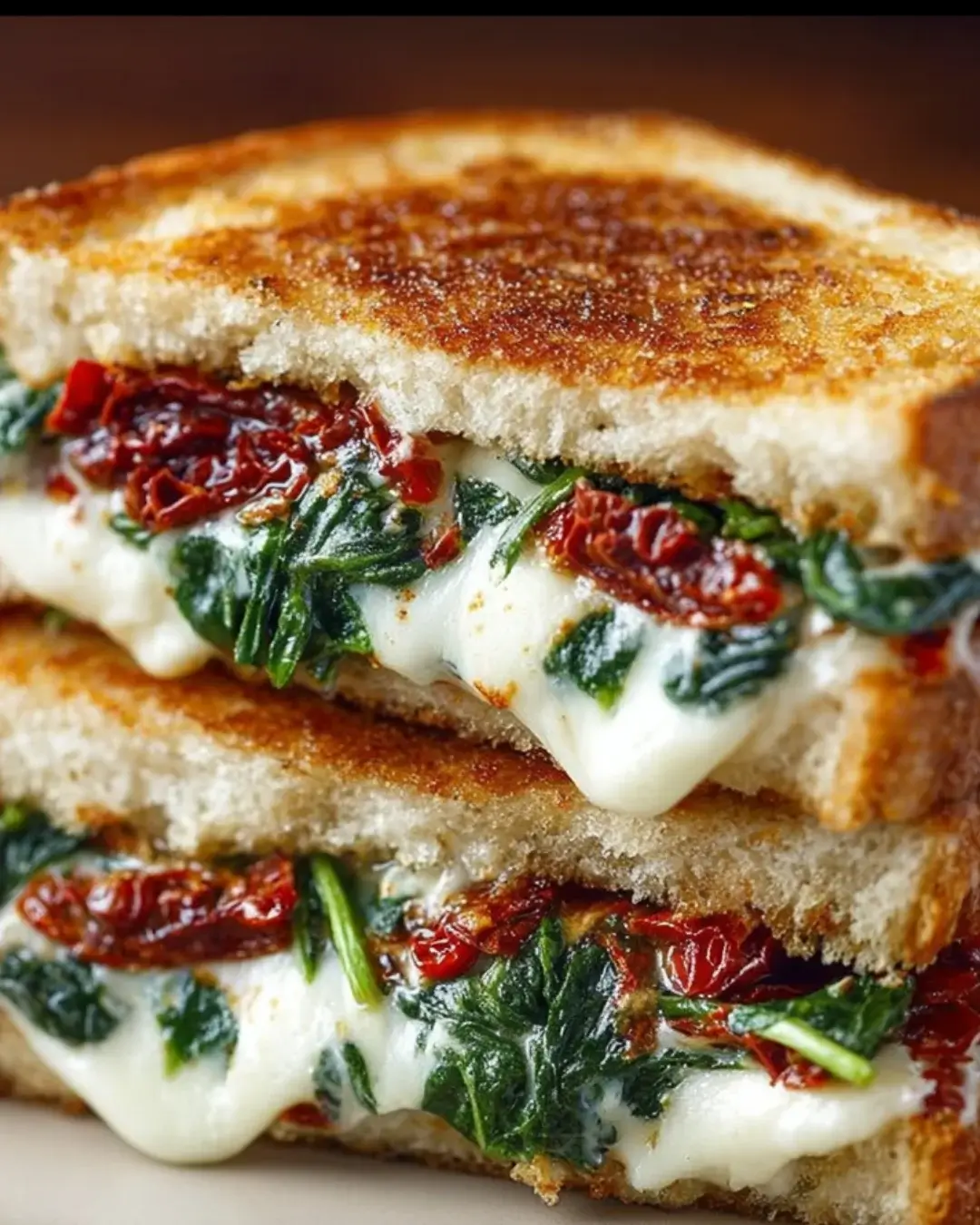 Now, let’s elevate that classic comfort food with a twist: the Sun-Dried Tomato, Spinach, and Ricotta Grilled Cheese.
