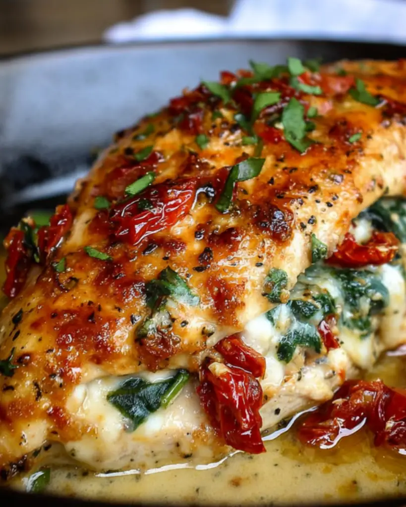 A delicious and flavorful recipe for Sundried Tomato, Spinach, and Cheese Stuffed Chicken, perfect for a hearty meal.