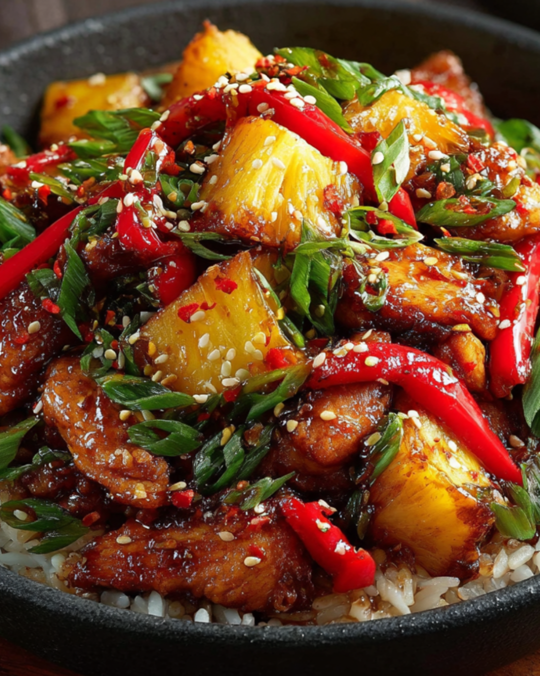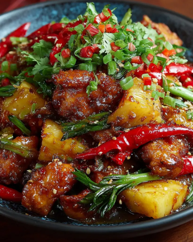 A delicious and vibrant Sweet and Spicy Pineapple Chicken Stir Fry that combines tender chicken with fresh vegetables and a tangy sauce.