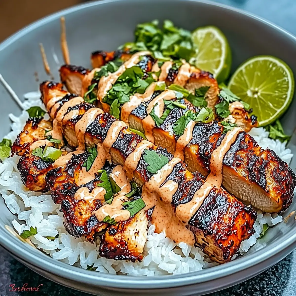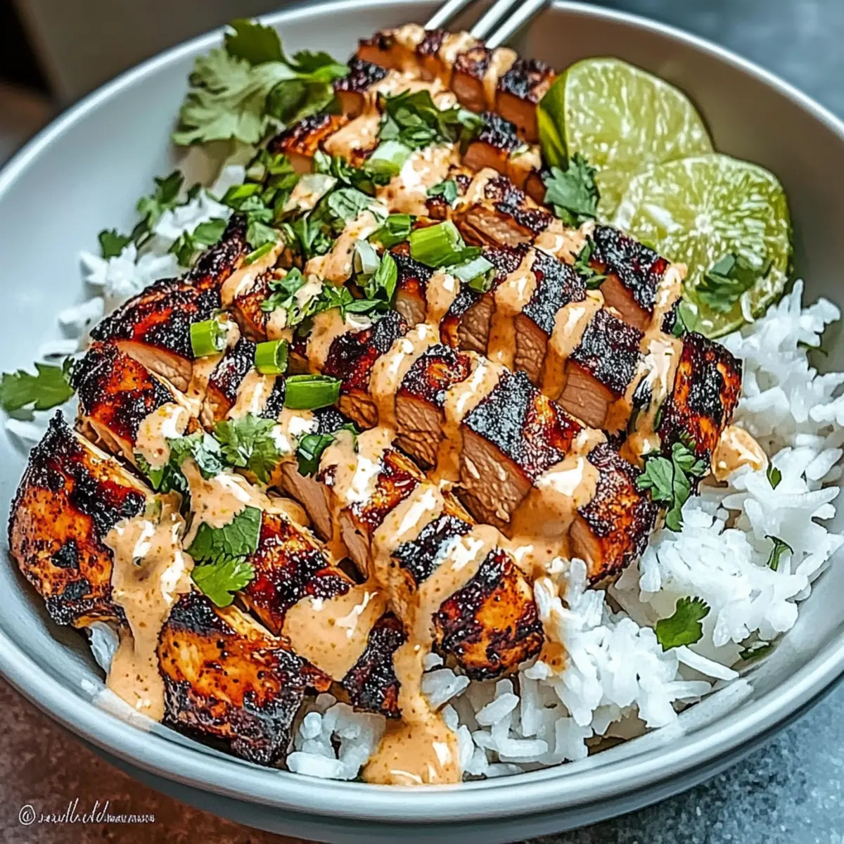 - Assemble the bowl with a serving of jasmine rice as the base, layer grilled chicken, and drizzle coconut lime sauce. Garnish with fresh herbs and additional lime slices.