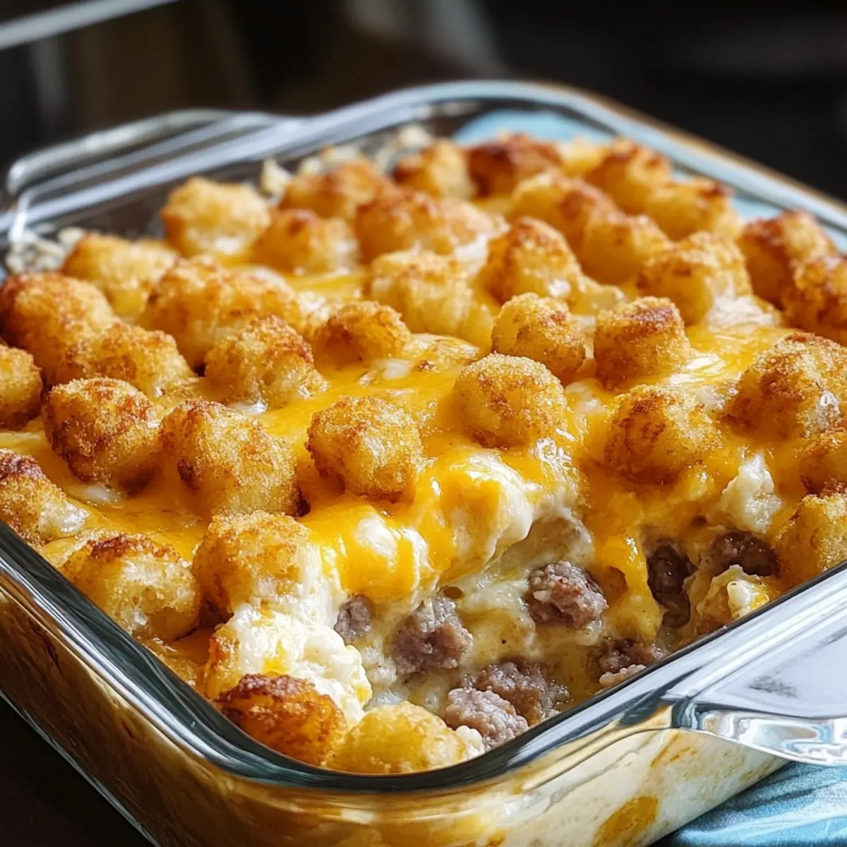 Preparing your Tater Tot Sausage Breakfast Casserole in advance is a game-changer for busy mornings! You can assemble the entire casserole up to 24 hours ahead of time; simply layer all the ingredients and cover tightly with plastic wrap before refrigerating. This allows the flavors to meld together beautifully while saving you precious time in the morning. When you’re ready to bake, just pop it in the oven, allowing for an extra 5-10 minutes of cooking time if starting from cold. To maintain that delightful crispy topping, avoid thawing the tater tots before adding them, ensuring they stay wonderfully crunchy! Enjoy a mouthwatering brunch with minimal morning fuss!