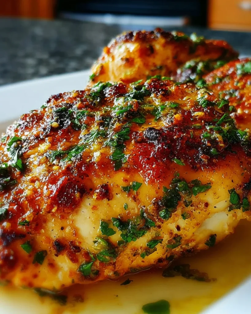 Once the chicken is done, remove it from the oven and let it rest for about 5 minutes. This allows the juices to redistribute, ensuring each bite is tender and juicy. Before serving, sprinkle some fresh parsley on top for a pop of color and freshness.