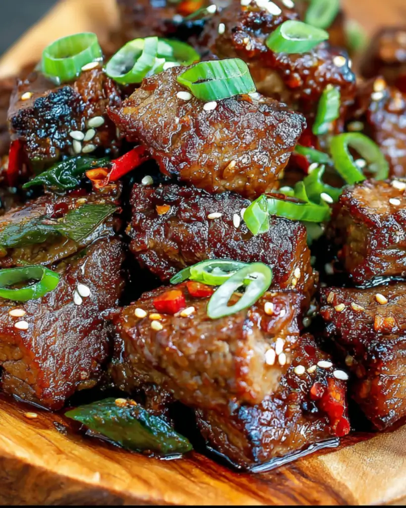 Remove the skillet from heat and sprinkle sesame seeds and sliced green onions over the top. These garnishes not only add flavor but also a pop of color. Serve your Teriyaki Steak Bites hot, and watch them disappear!