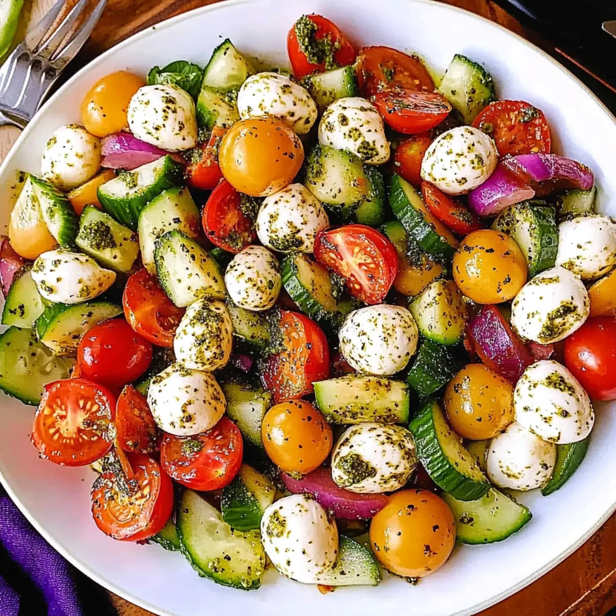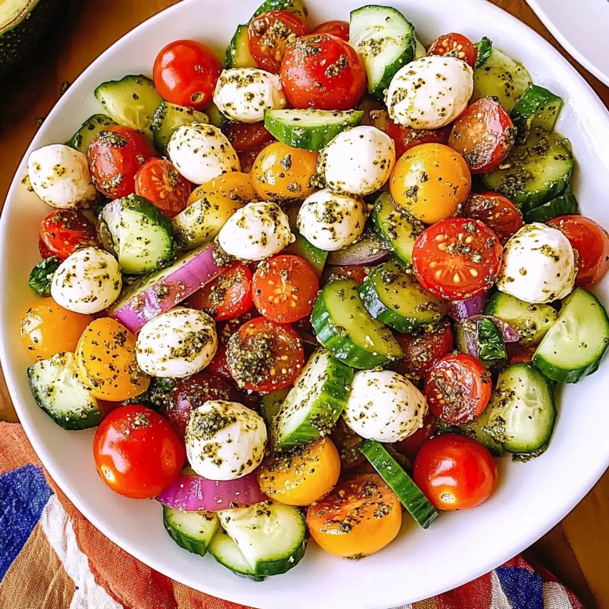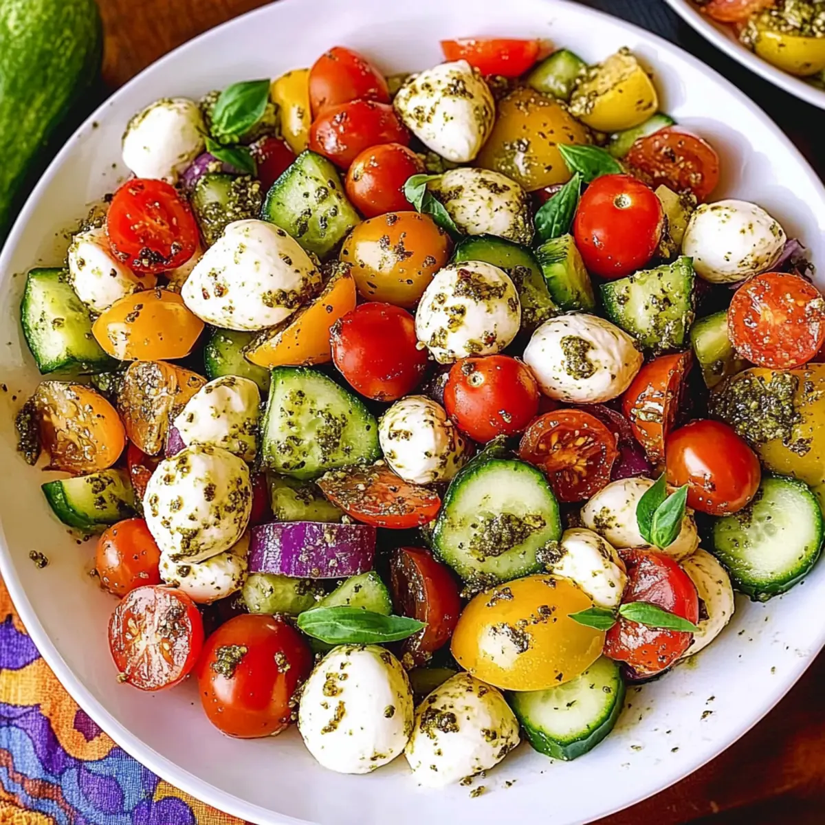 As I stood in my kitchen on a sunny afternoon, the world outside felt alive and vibrant, mirroring the colorful ingredients spread across my countertop. That’s when the idea struck me: a refreshing Tomato Cucumber Avocado Salad with Mozzarella and Basil Pesto! This dish not only captures the essence of Mediterranean flavors but also brings the spirit of warm-weather gatherings right to your table. With its quick prep time and power of freshness, it’s an irresistible option for anyone looking to swap out fast food for something healthy and satisfying. Imagine all those juicy tomatoes, creamy avocados, and fragrant pesto mingling together—can you feel the excitement? Let’s dive into this delicious, wholesome salad that’s perfect for potlucks, light lunches, or as a sidekick to your favorite grilled dishes!