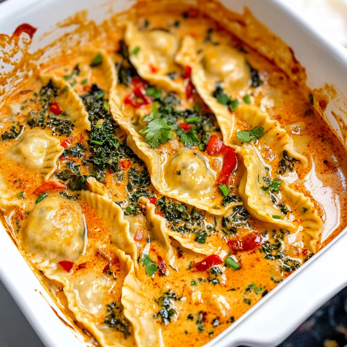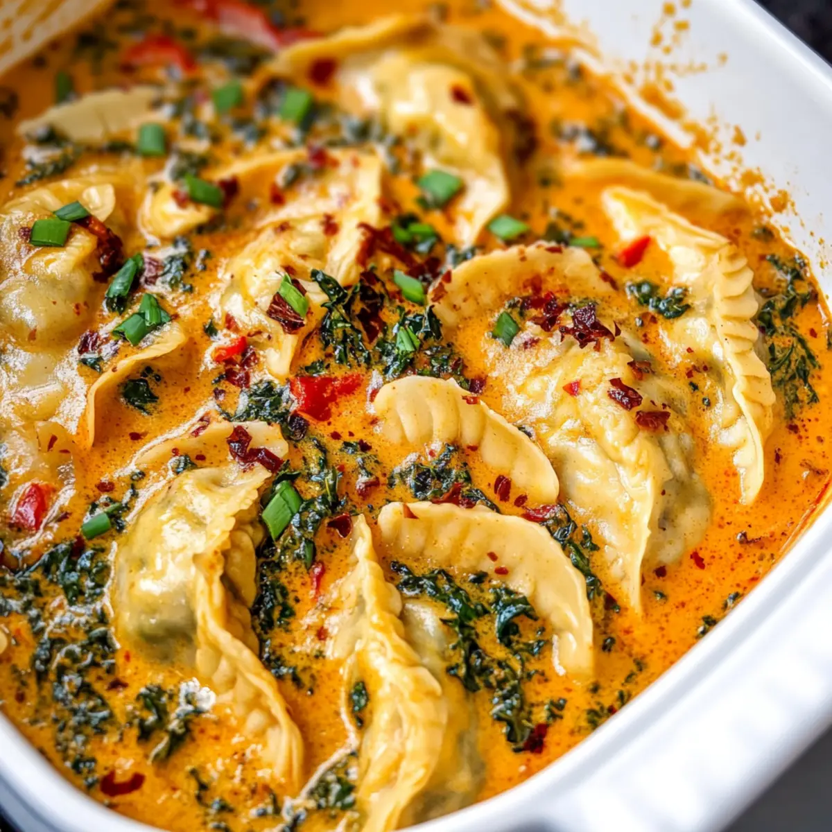 Savory Vegan Baked Dumplings in Creamy Red Curry Sauce