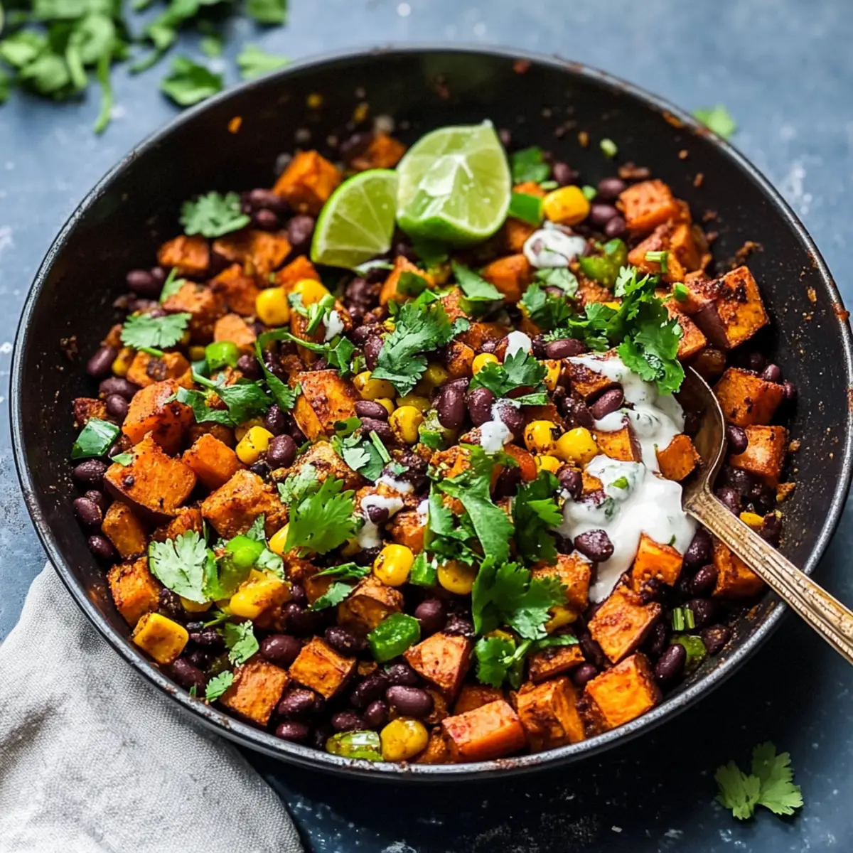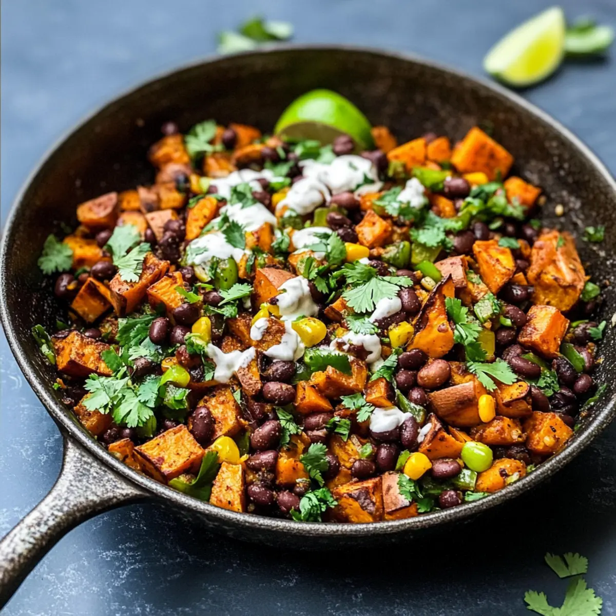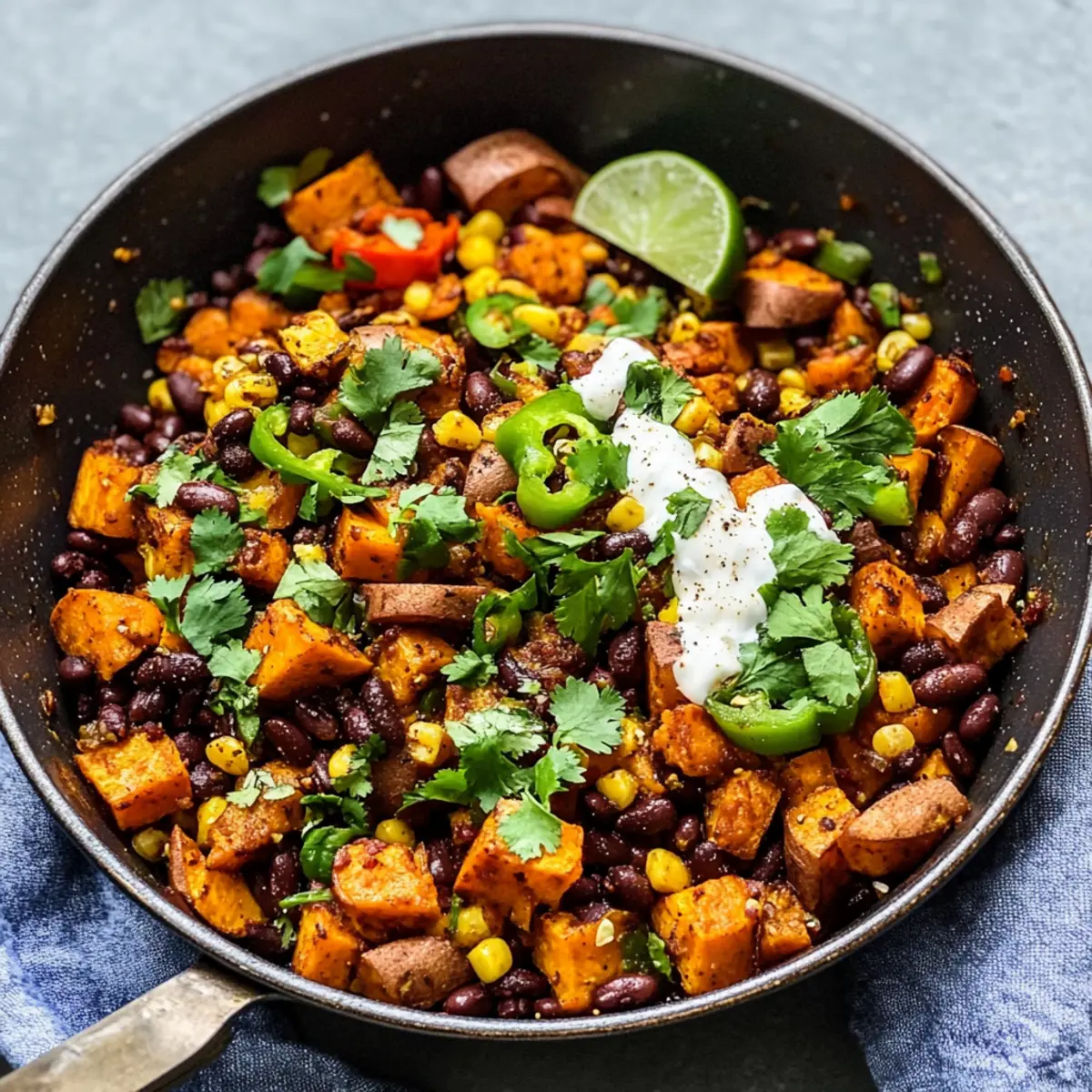 Once everything is heated through and well mixed, remove the skillet from heat. Serve your Vegan Mexican Sweet Potato Breakfast Hash hot, garnished with fresh cilantro, a squeeze of lime juice, and optional jalapeños or vegan sour cream if desired. Enjoy the vibrant colors and flavors as you dig into this satisfying dish!