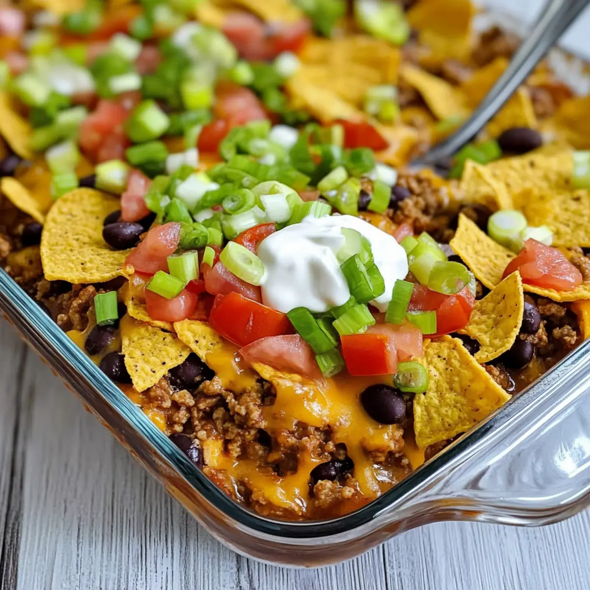 As I took a bite of the bubbling Walking Taco Casserole, I was transported back to carefree summer nights under the stars, where taco night was always a hit. This dish puts a delightful twist on the classic walking taco, layering plump, seasoned ground beef, zesty tomatoes, and crunchy Fritos into a warm, comforting casserole that practically begs to be shared. Not only is it an absolute crowd-pleaser for family dinner, but it also comes together in a snap—perfect for those busy weeknights when cooking feels like a chore. Plus, the customizable toppings let everyone join the fun in making their own unique creation! Ready to dive into a meal that will have everyone asking for seconds?