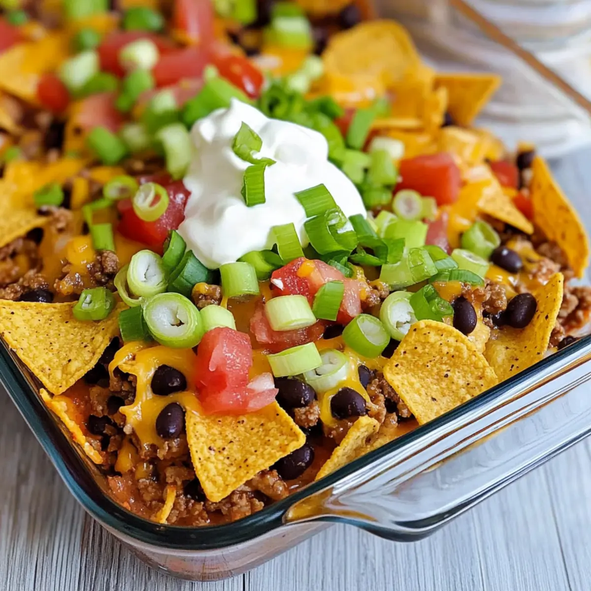 Yes! If you’re serving someone with allergies, be aware that this recipe contains common allergens like dairy (cheese and sour cream) and potentially gluten (Fritos or Doritos). For dairy-free options, you can substitute with vegan cheese and dairy-free sour cream. Always check the labels on your ingredients to ensure they meet allergy requirements.