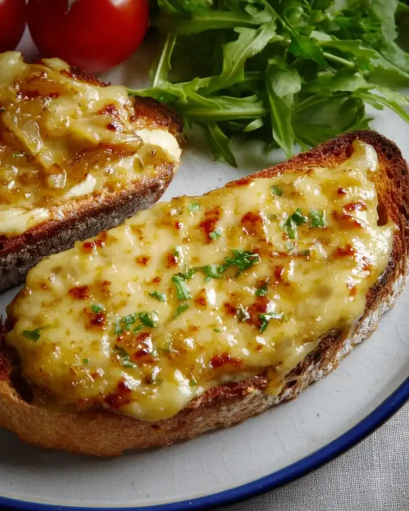 The creamy cheese sauce melts beautifully over crispy toast, creating a satisfying crunch with every bite.
